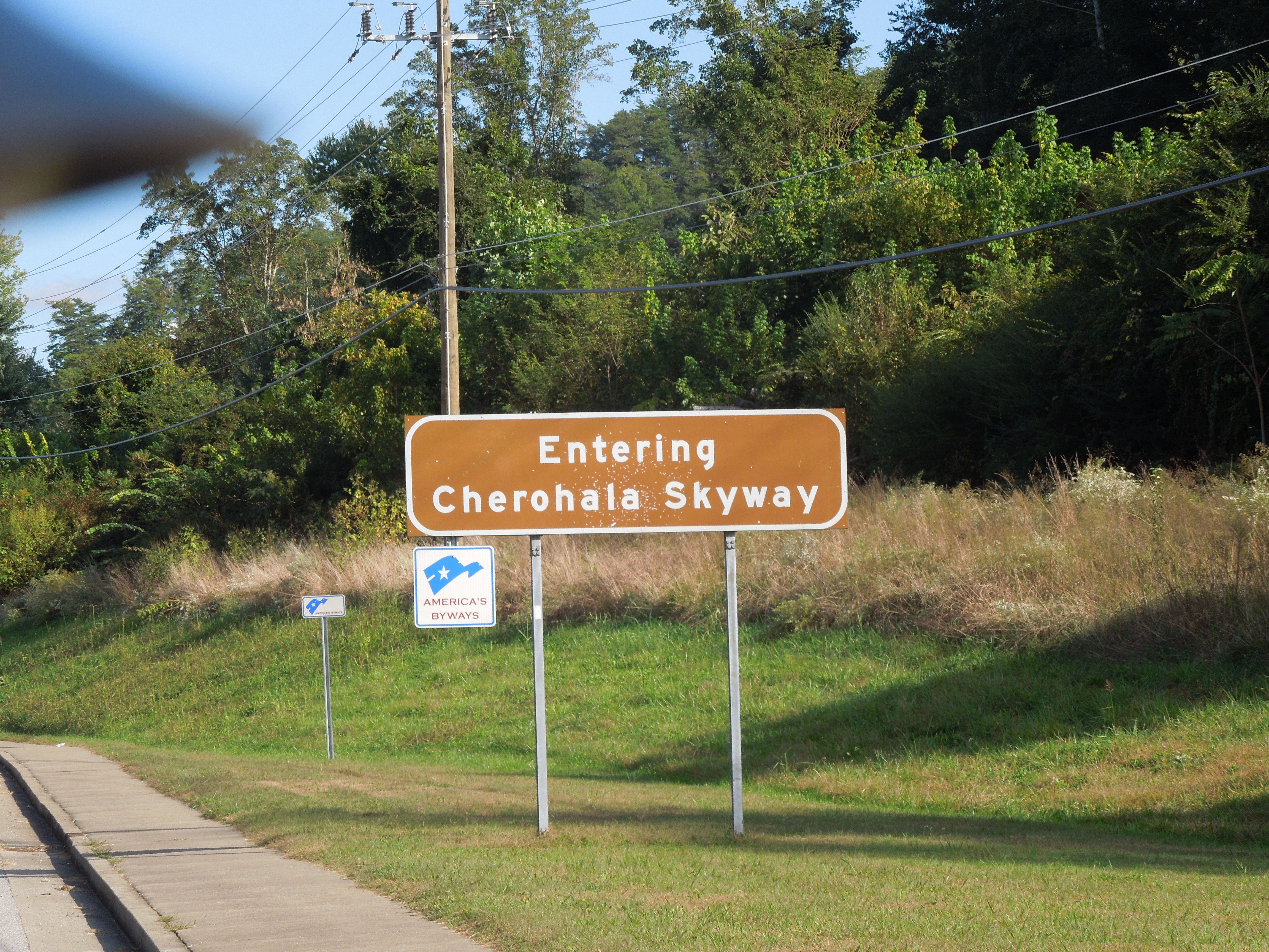 The Cherohala Skyway runs from Robbinsville, North Carolina (just south of the Tail of the Dragon) westward into Telico Plains, Tennessee. Just over 50 miles of smooth, twisty highway along a ridge of the westernmost point of the Smokey Mountains. The scenery is spectacular – especially with the fall colours just starting to come out. The weather that day was sunny and clear and traffic was actually quite light, making for a nice enjoyable ride.