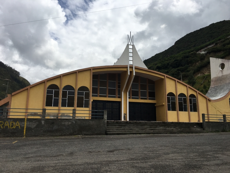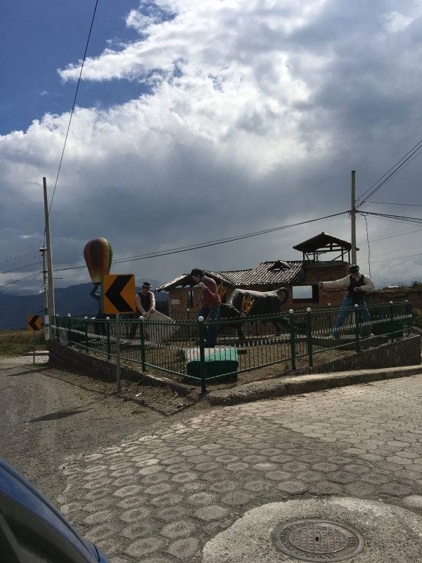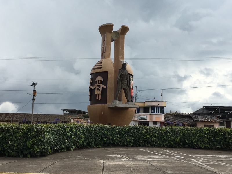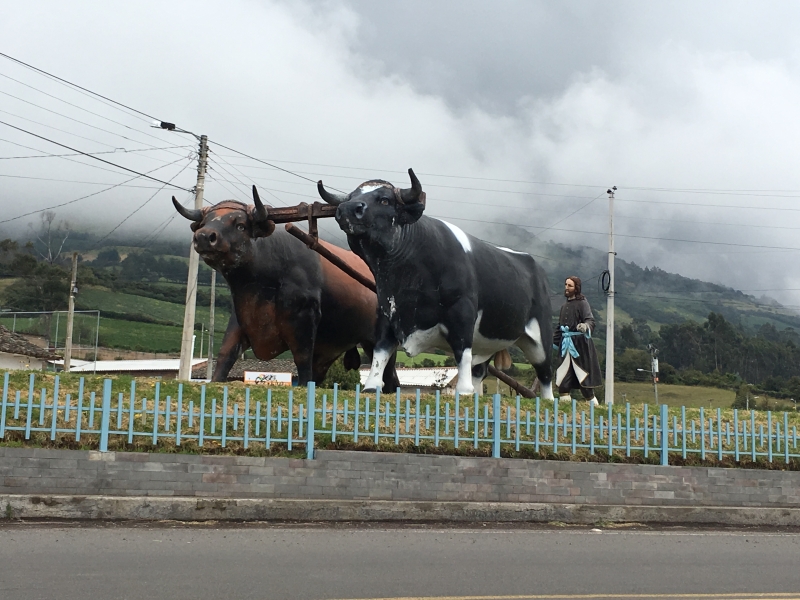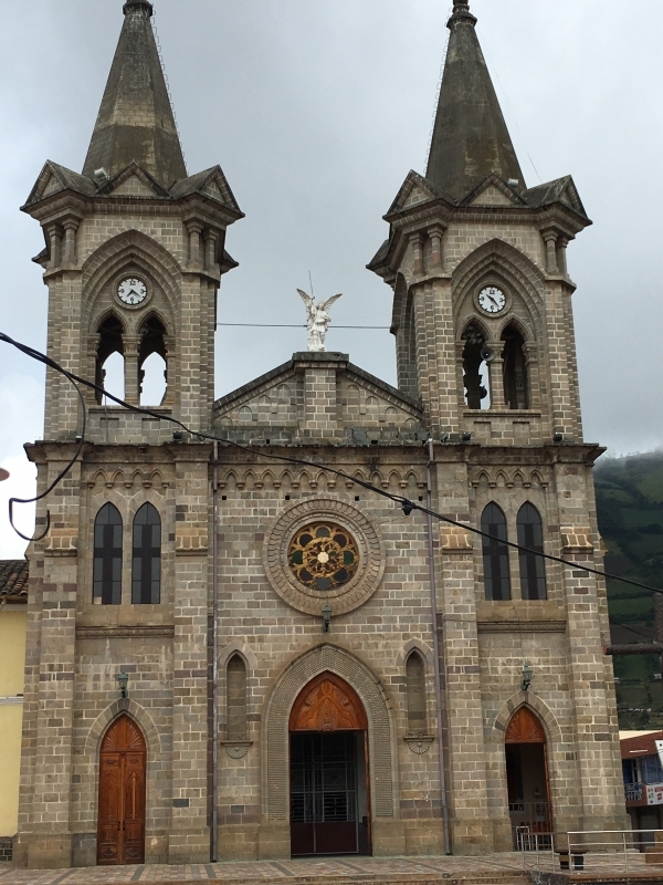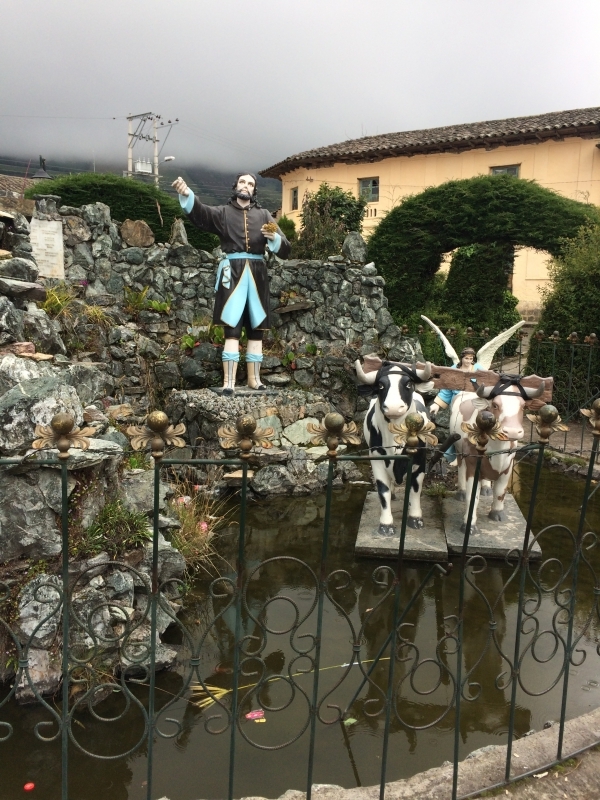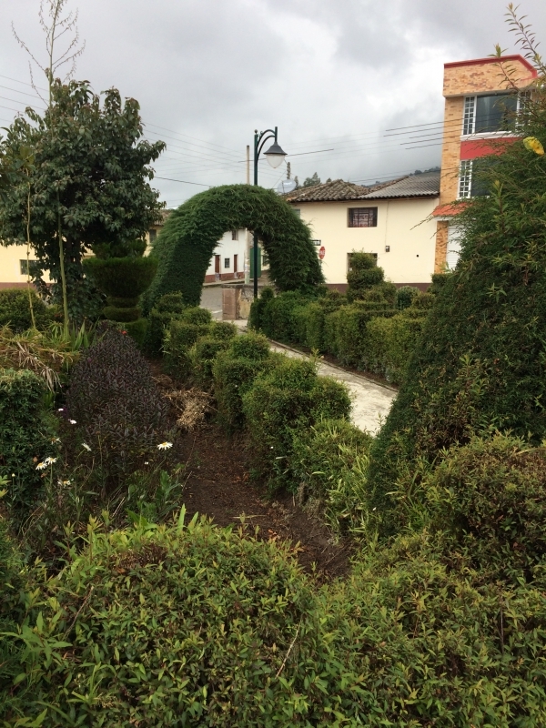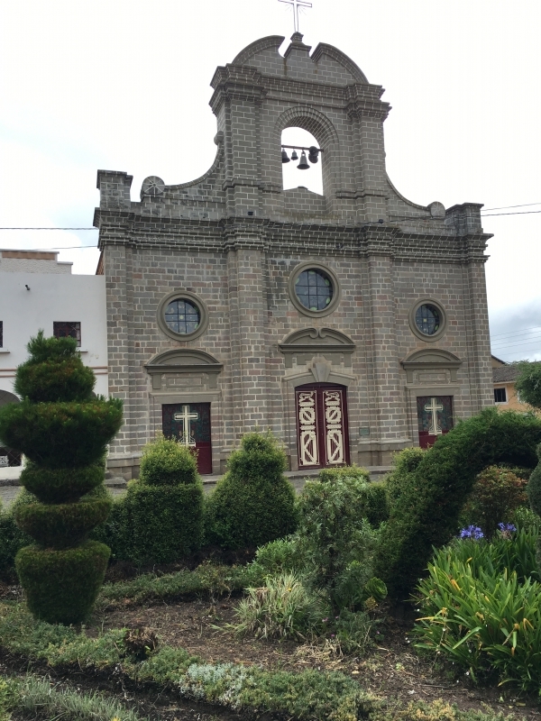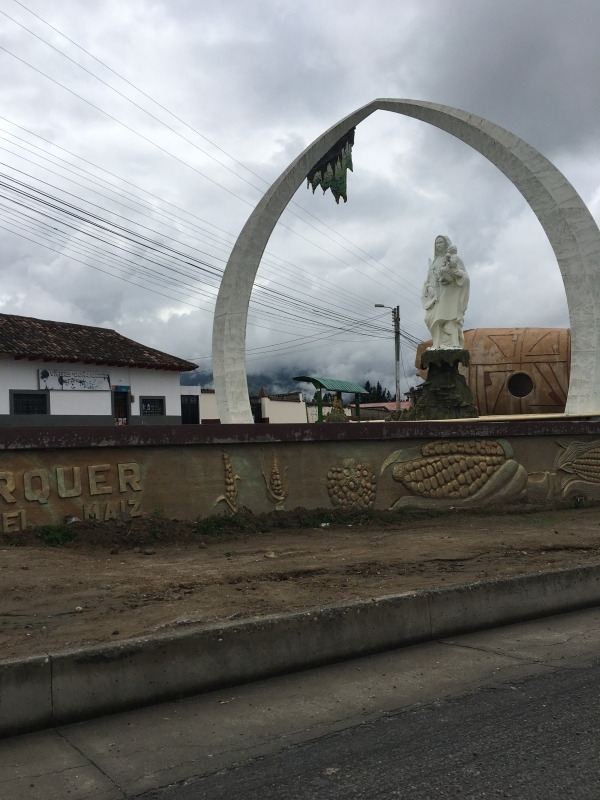 After a nice soak in the pool we headed back up to the car and decided to take a different back road up and out of the gorge. It was a rough cobblestone road, but not in too bad of shape and it brought us up into the middle of the small village of La Paz. Once back on the highway we decided to explore further by taking an alternate route back to Ibarra through the town of El Angel. There were several small villages along the way, each with its own beautiful church. One town, San Isidro, had a beautiful church with a small topiary garden out in front. Some of the towns had large statues on the highway where the road went into the town. The town of El Angel is located just south of the large El Angel Ecological Reserve which is home to many unique Andean highland plants and animals.