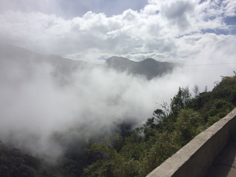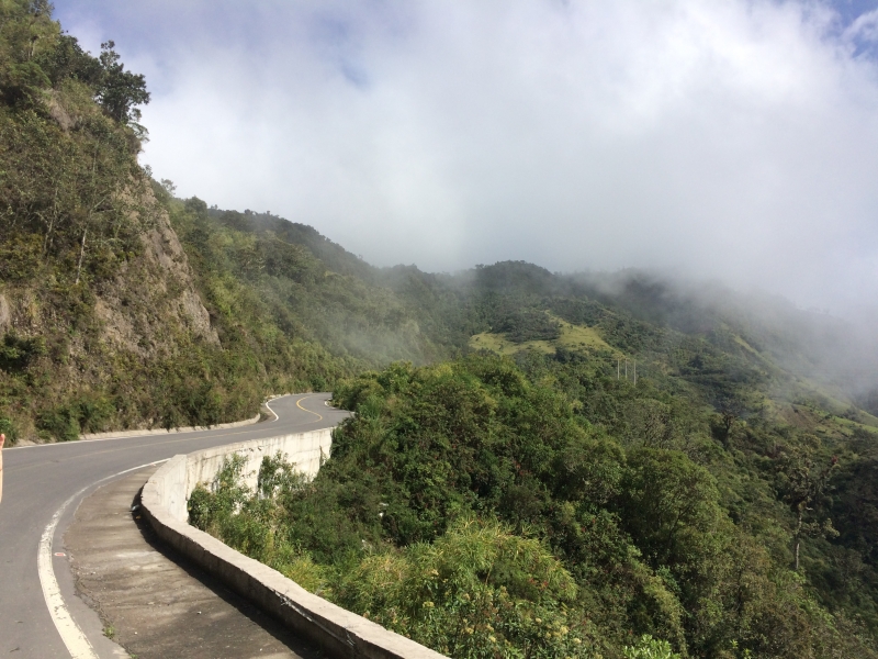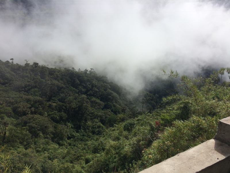 Once over the top, the landscape changed dramatically in a very short time. As we headed downhill towards the Intag Valley, the vegetation suddenly changed into dense jungle. The road was very steep with many switchbacks, small mudslides, dense fog patches, and a few washouts. It was a bit tricky to drive.
