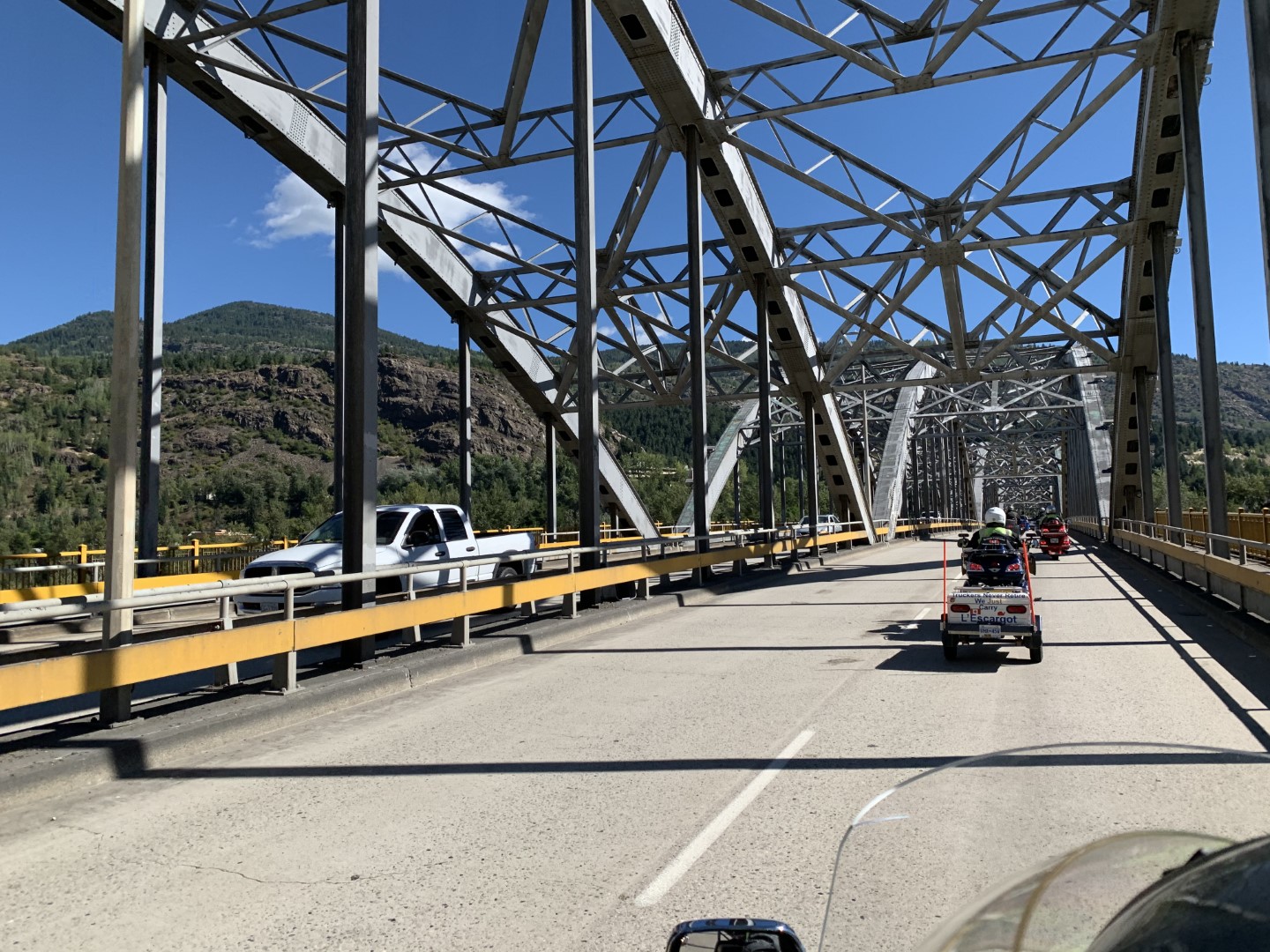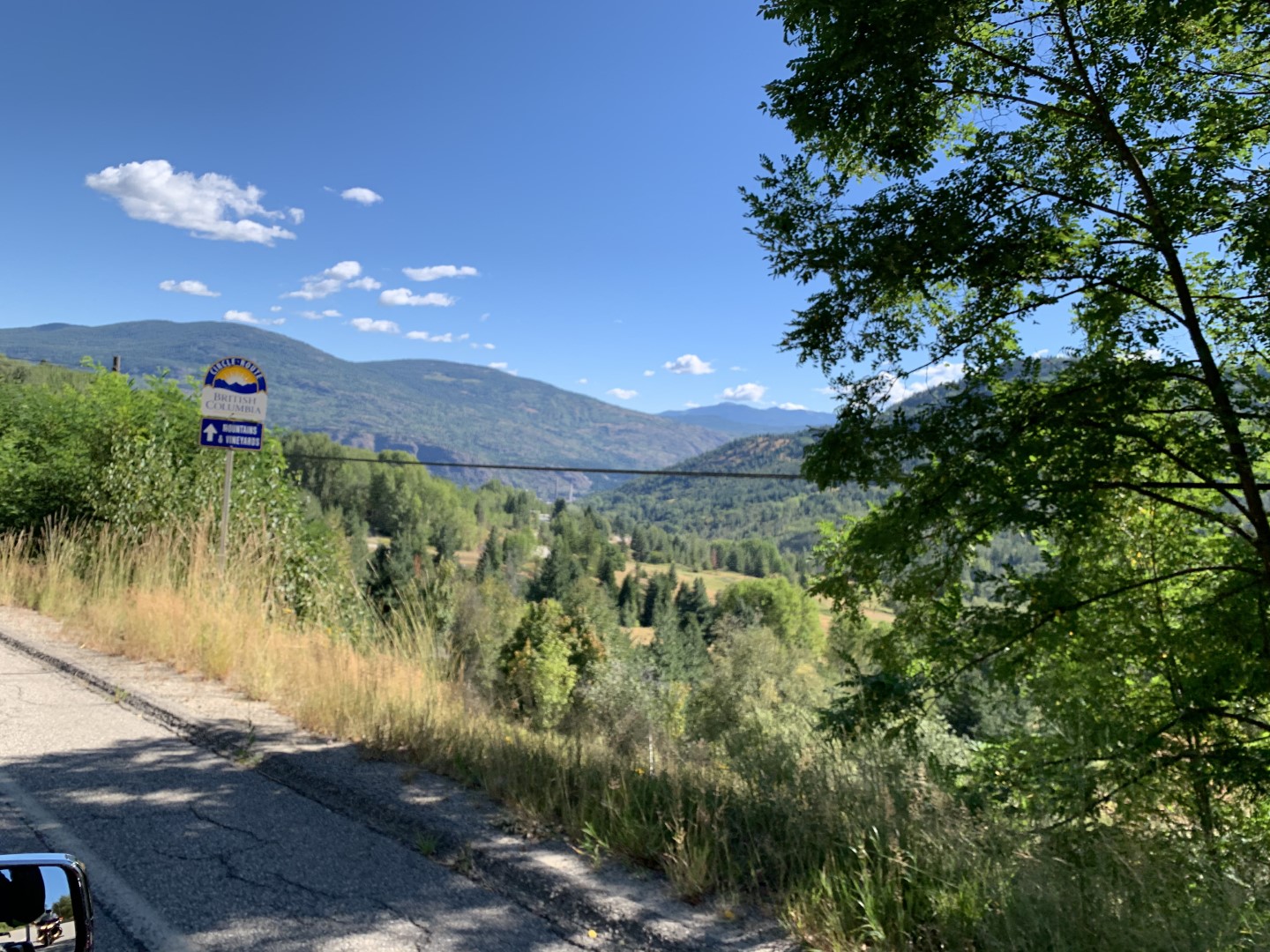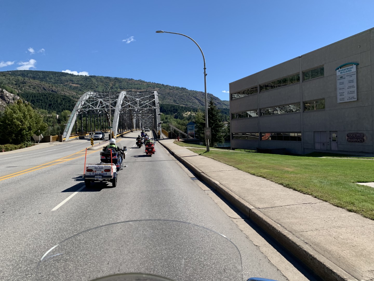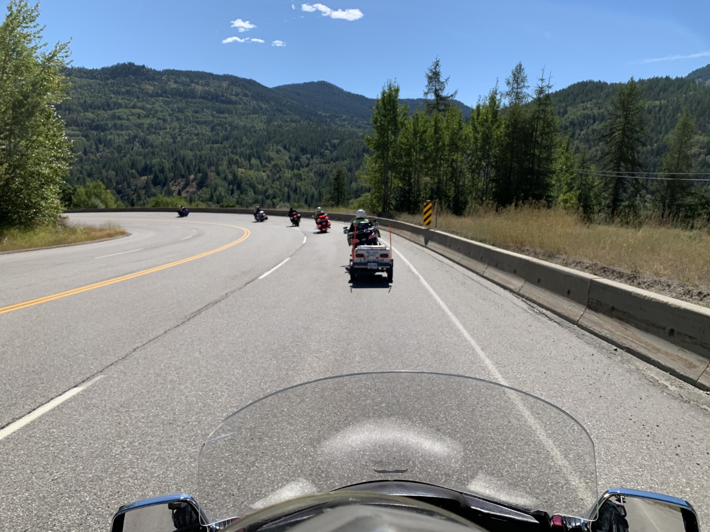 After the photo stop, we decided to take a different route than planned and turned off towards Rossland and Trail, over Strawberry Pass. Terrific scenery, lots of twisties, and smooth roads. Our next stop was Creston after climbing up and over Kootenay Pass.