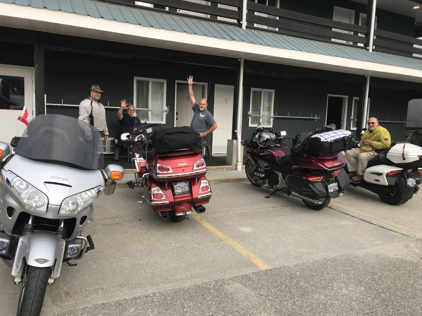 We all arrived safely in Grand Forks for our first night stay. We stayed at the Grand Forks Inn, formerly the Ramada. The rooms are clean and well kept. They are biker friendly and were happy to see us. Because of COVID, their pool was closed and there weren’t a lot of options for dining. Giselle and I opted for the Chinese restaurant located next to the motel. After dinner, we all sat outside our rooms with some cool drinks and discussed the day’s ride and plans for the next day…