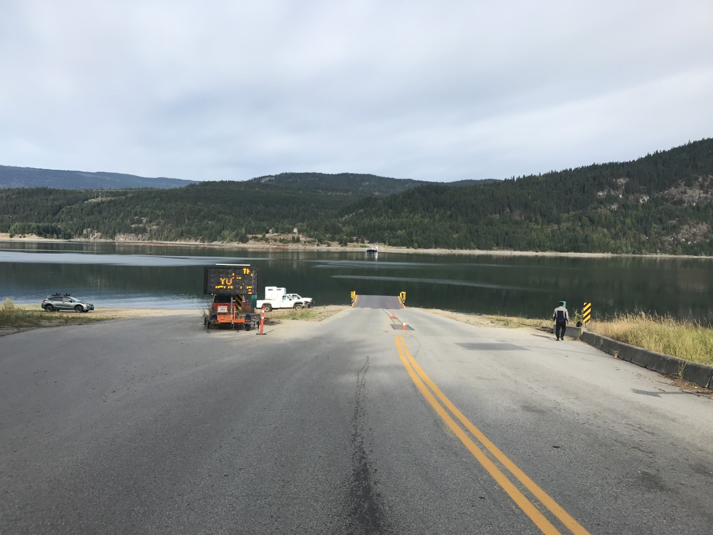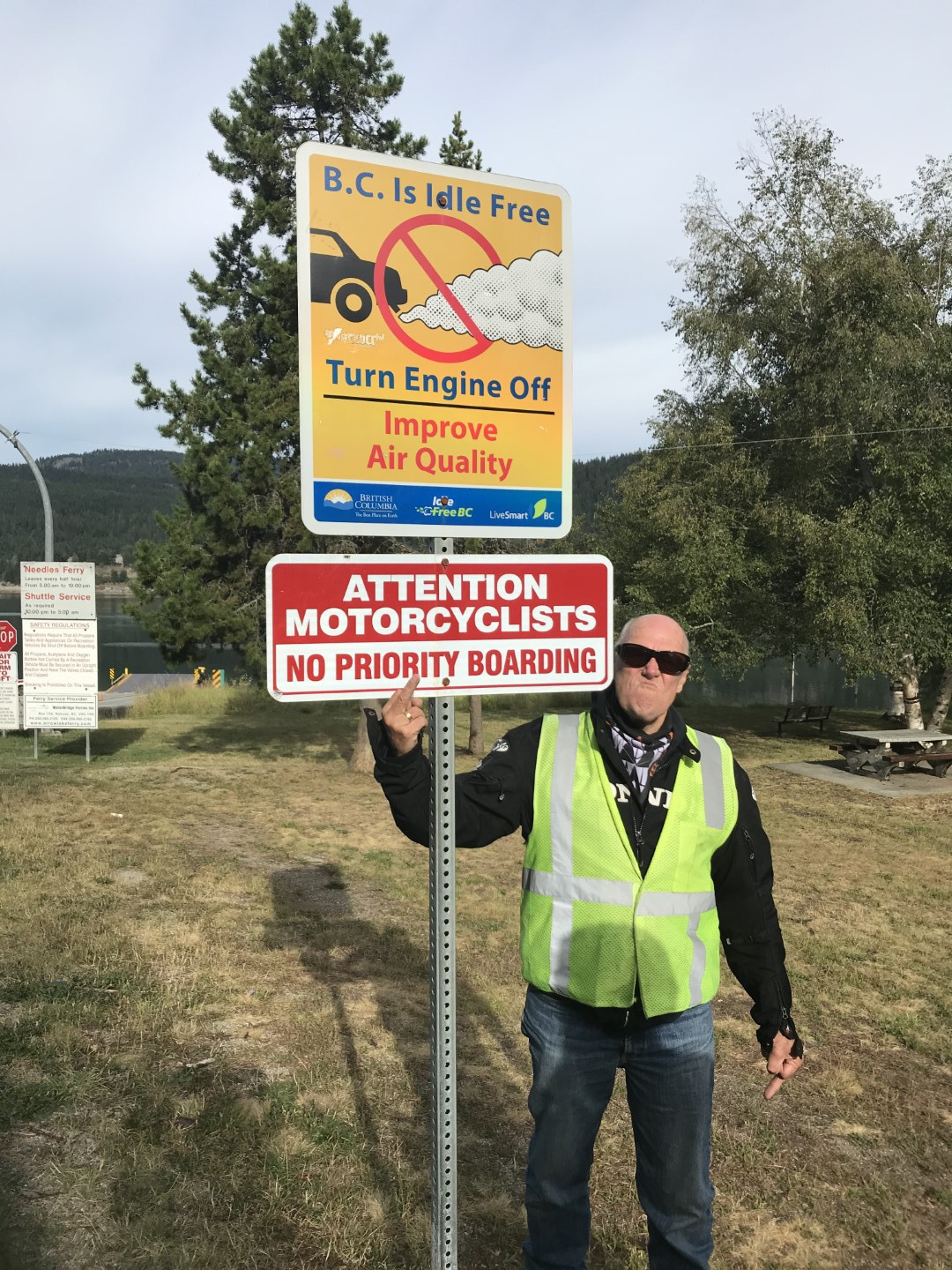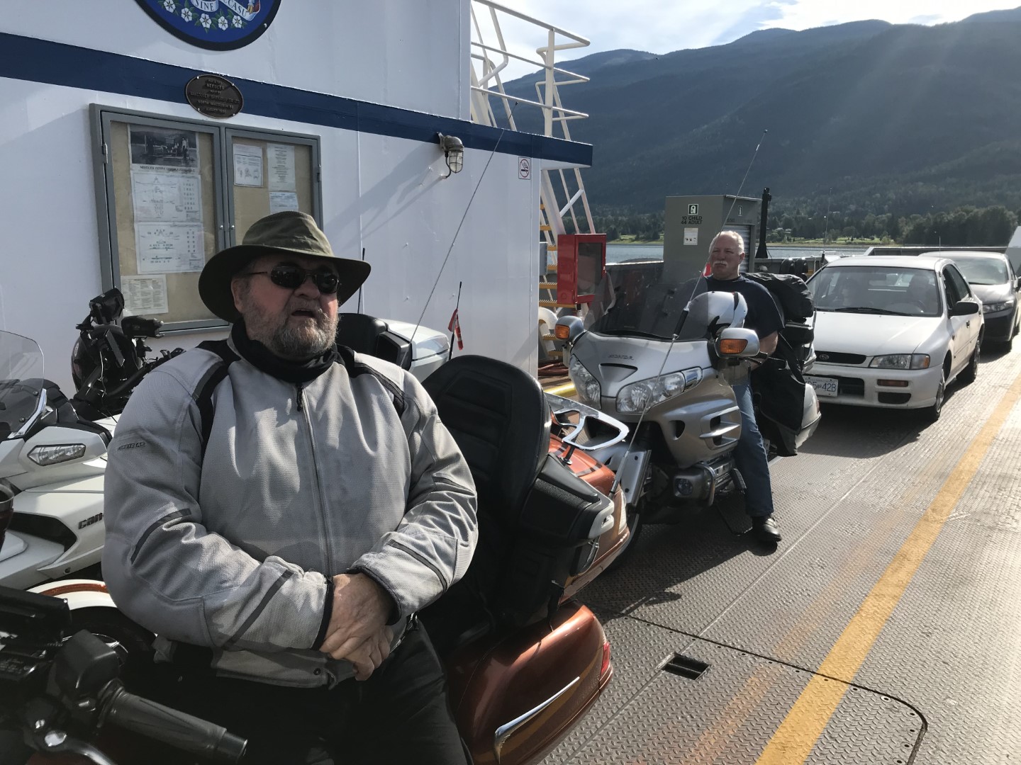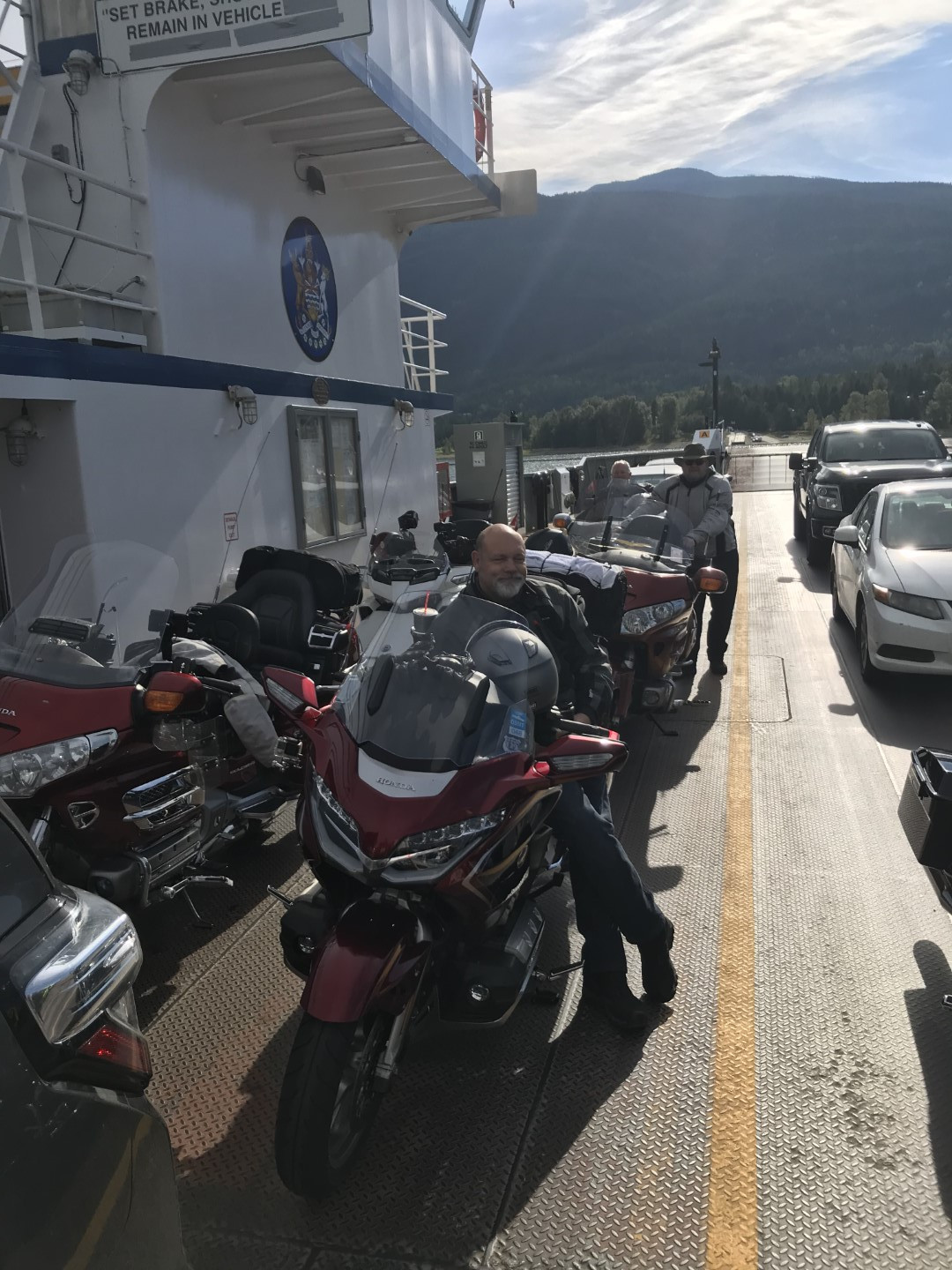 The next morning after everybody had breakfast, we headed down Arrow Lake towards Fauquier and the Needles Ferry. From there, the road heads up one of the most twisty sections of highway in BC – Selkirk Pass to Cherryville. We had a bit of fun on the ferry before heading up the pass….
