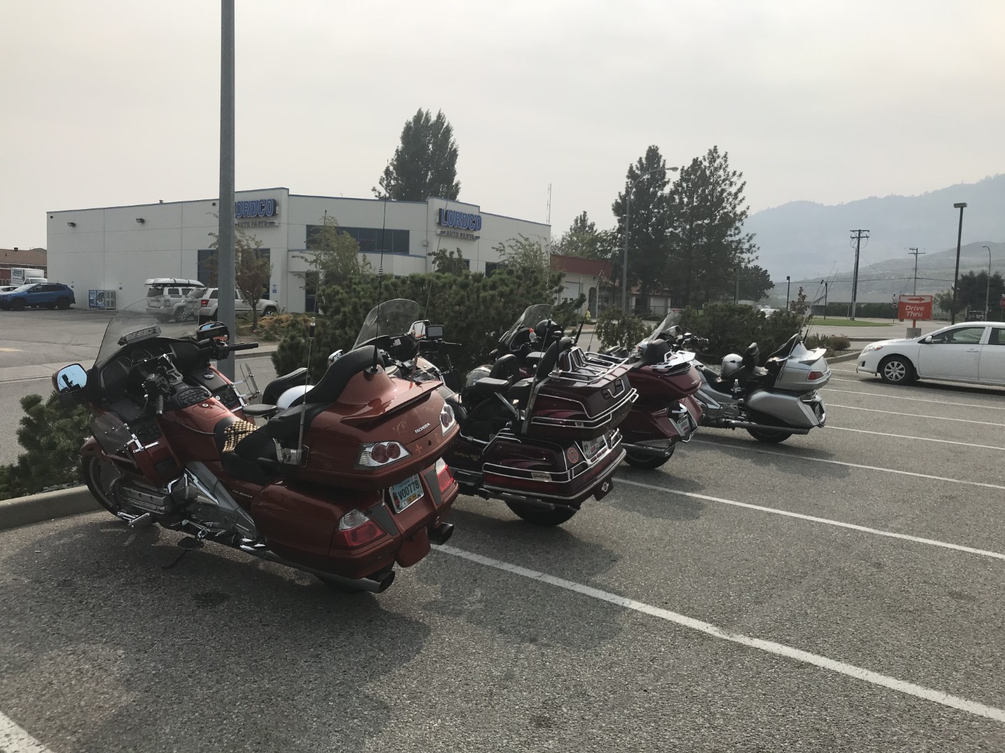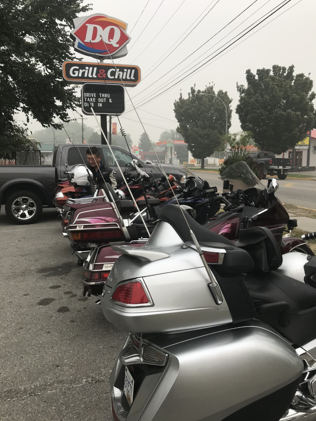 We stopped for fuel in Keremeos and noticed the skies were getting smoky. This was because of a large forest fire burning south of the border in Washington. We decided to keep riding east to see if we could get out of it…..