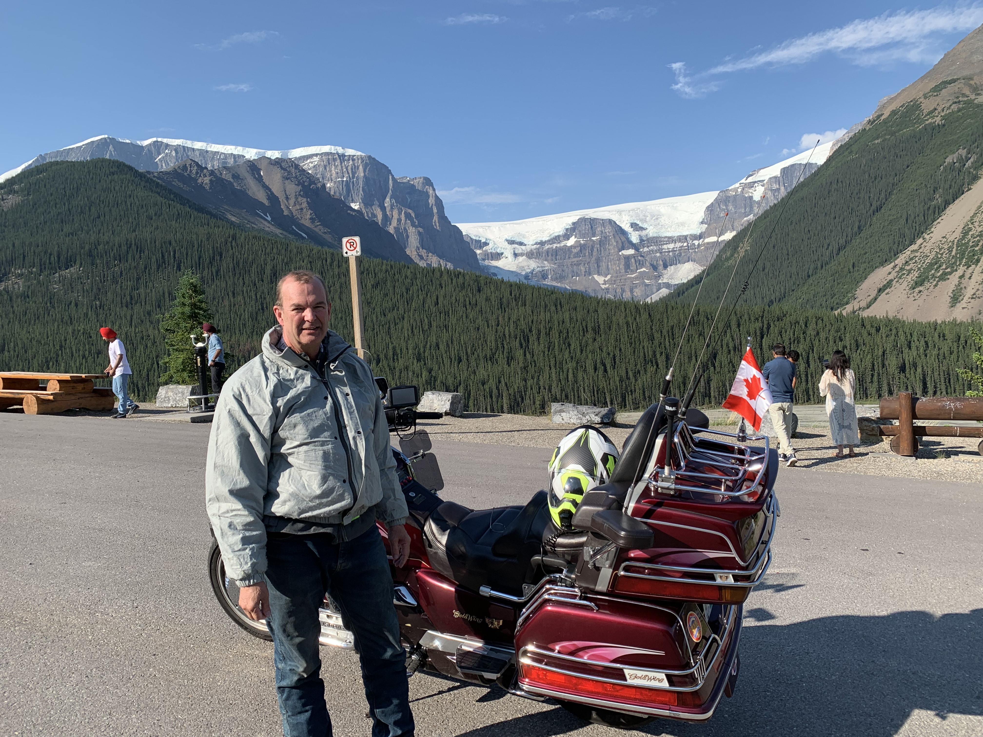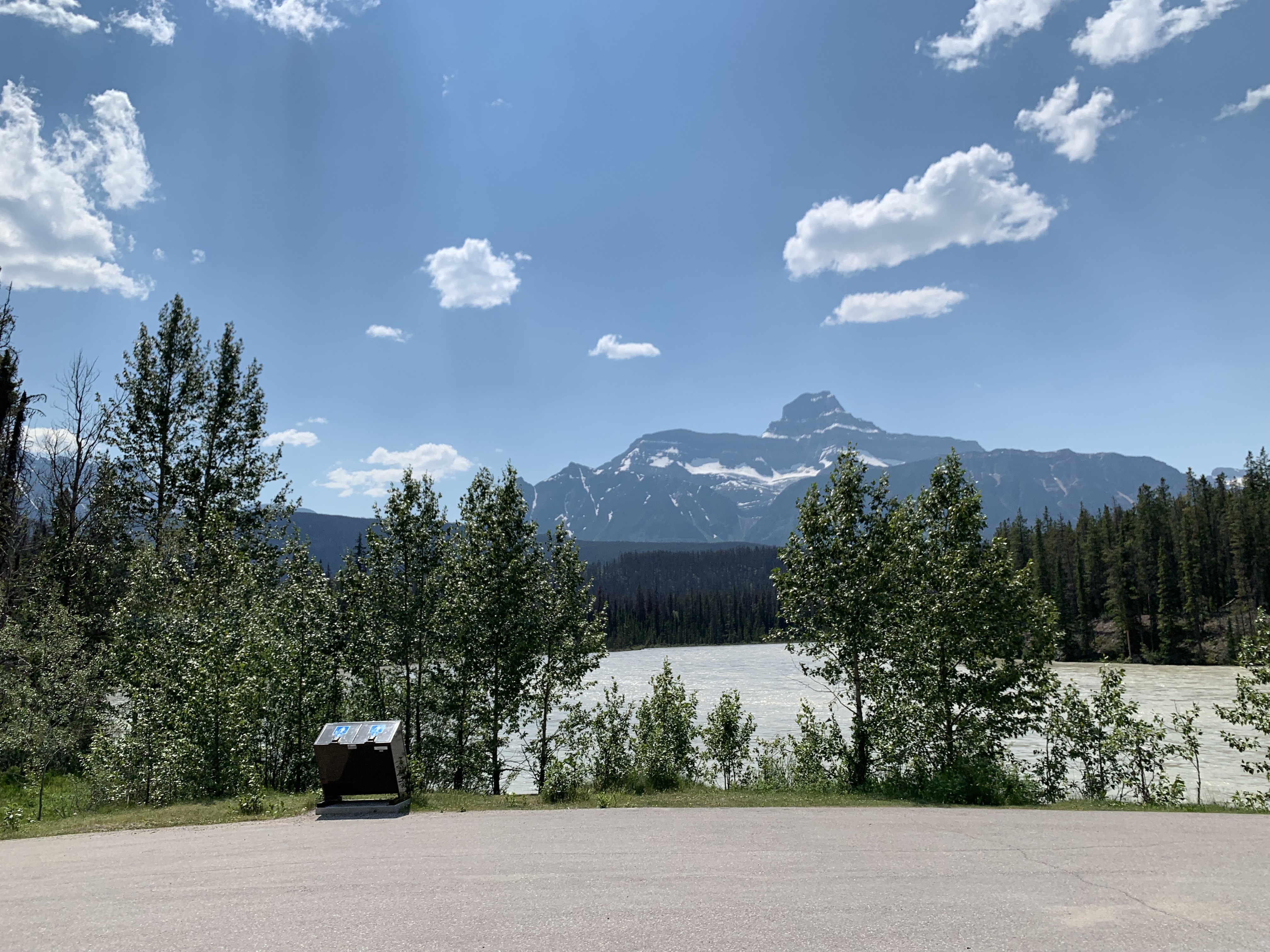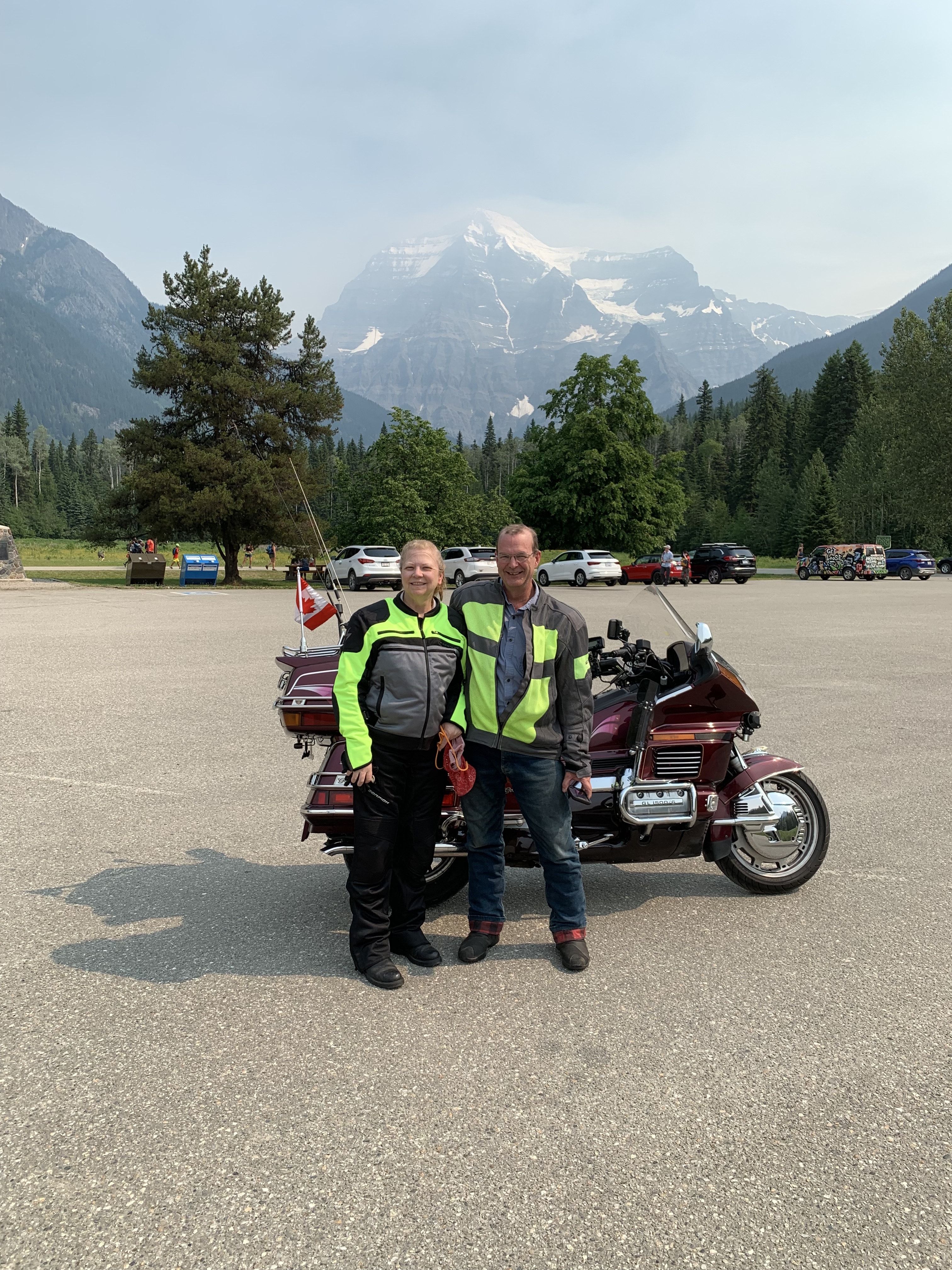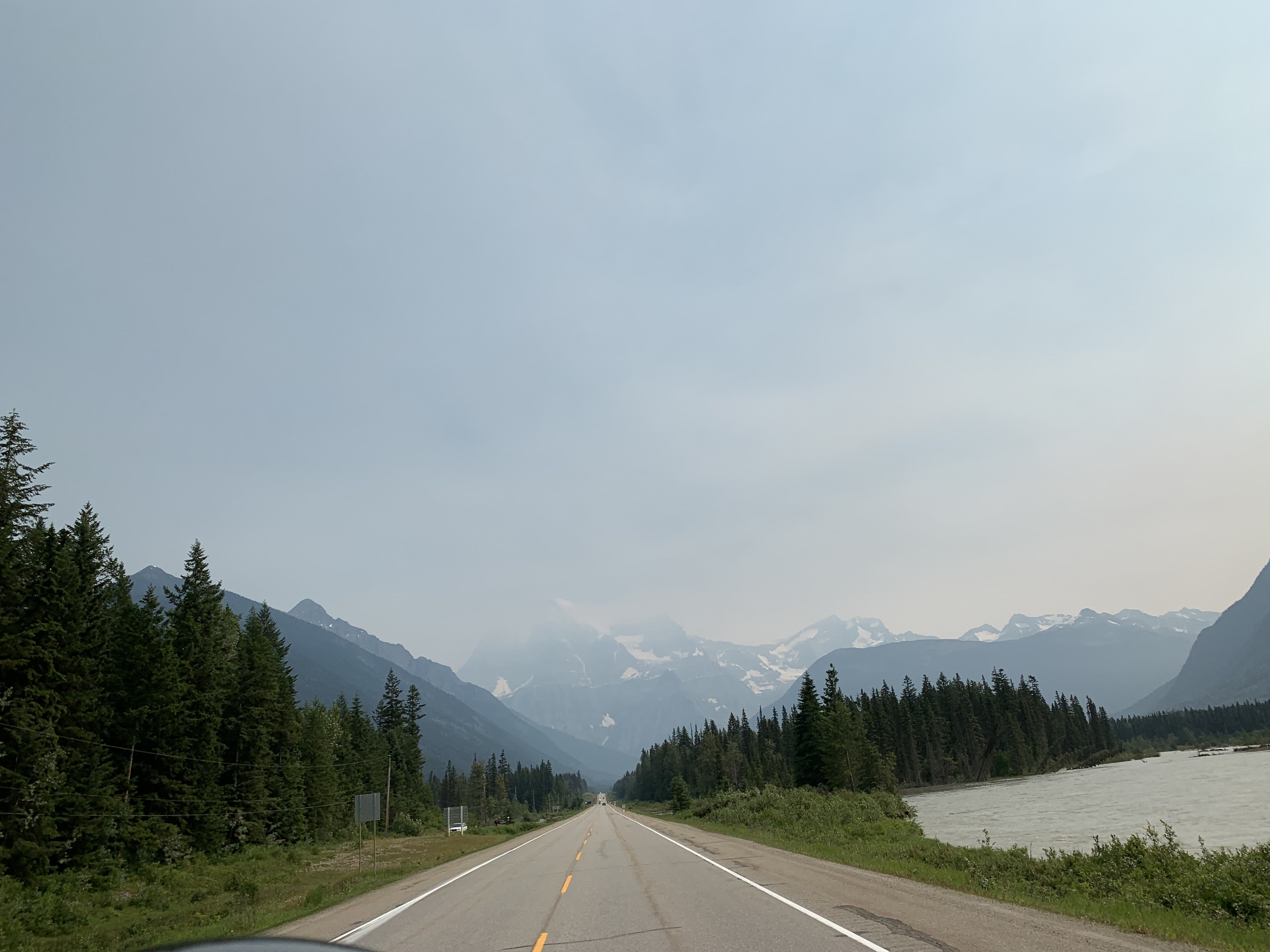 We fuelled up and headed north on Highway 5 towards Valemount and on to Jasper. We stopped along the way for a picture opportunity at Mt Robson, the highest peak in the Canadian Rockies. There was still a bit of smoke, but much clearer than around Kamloops.