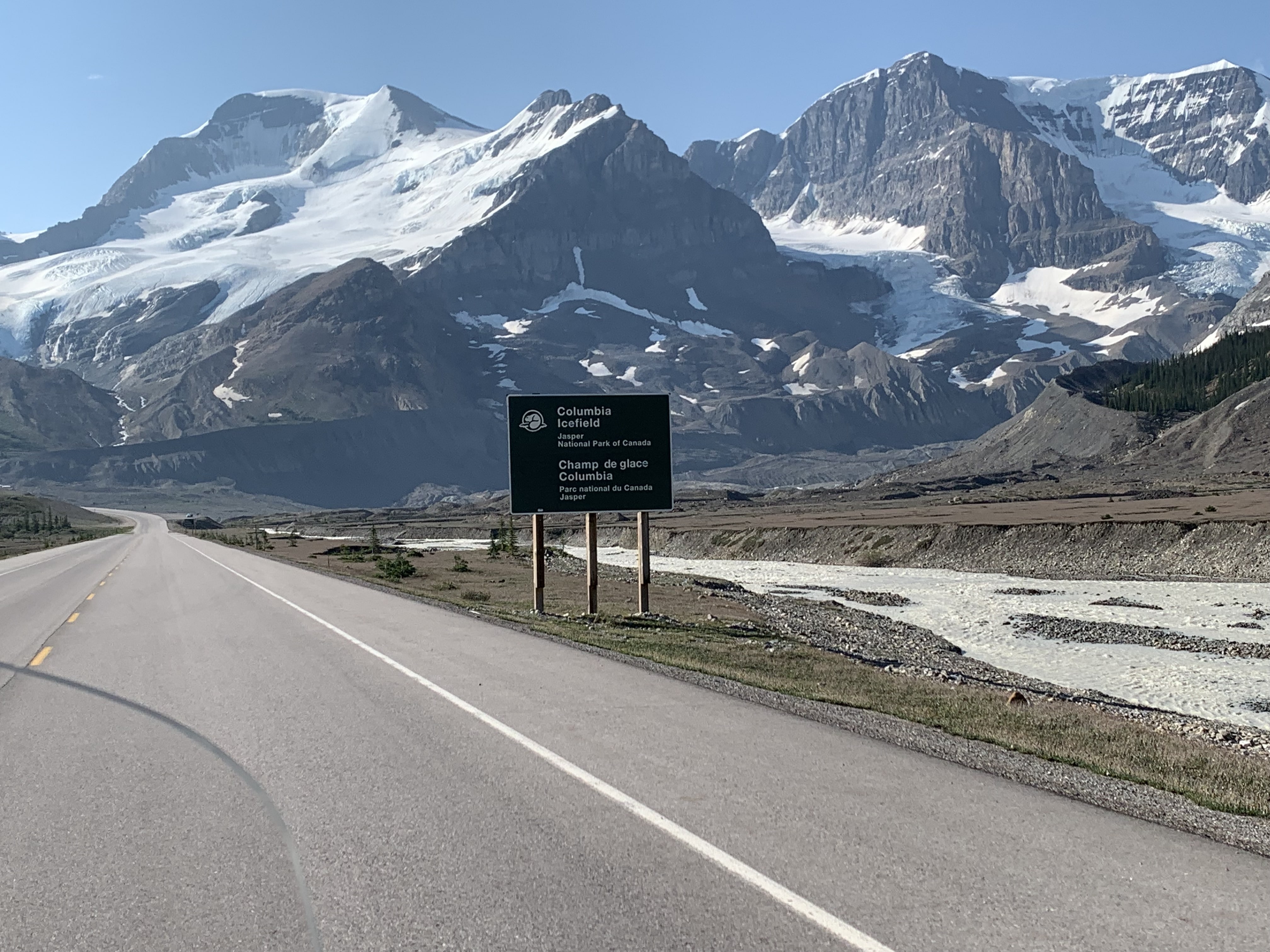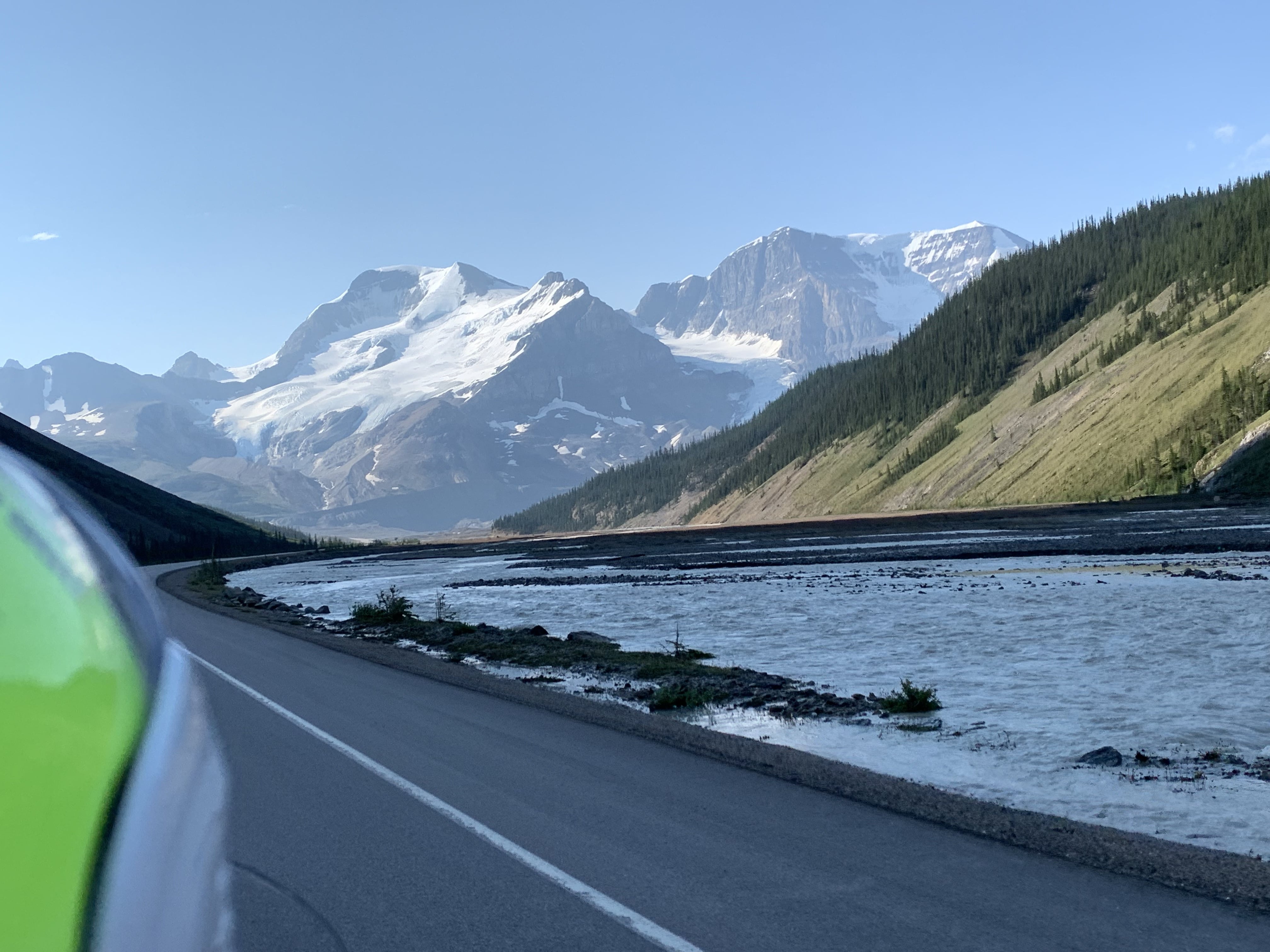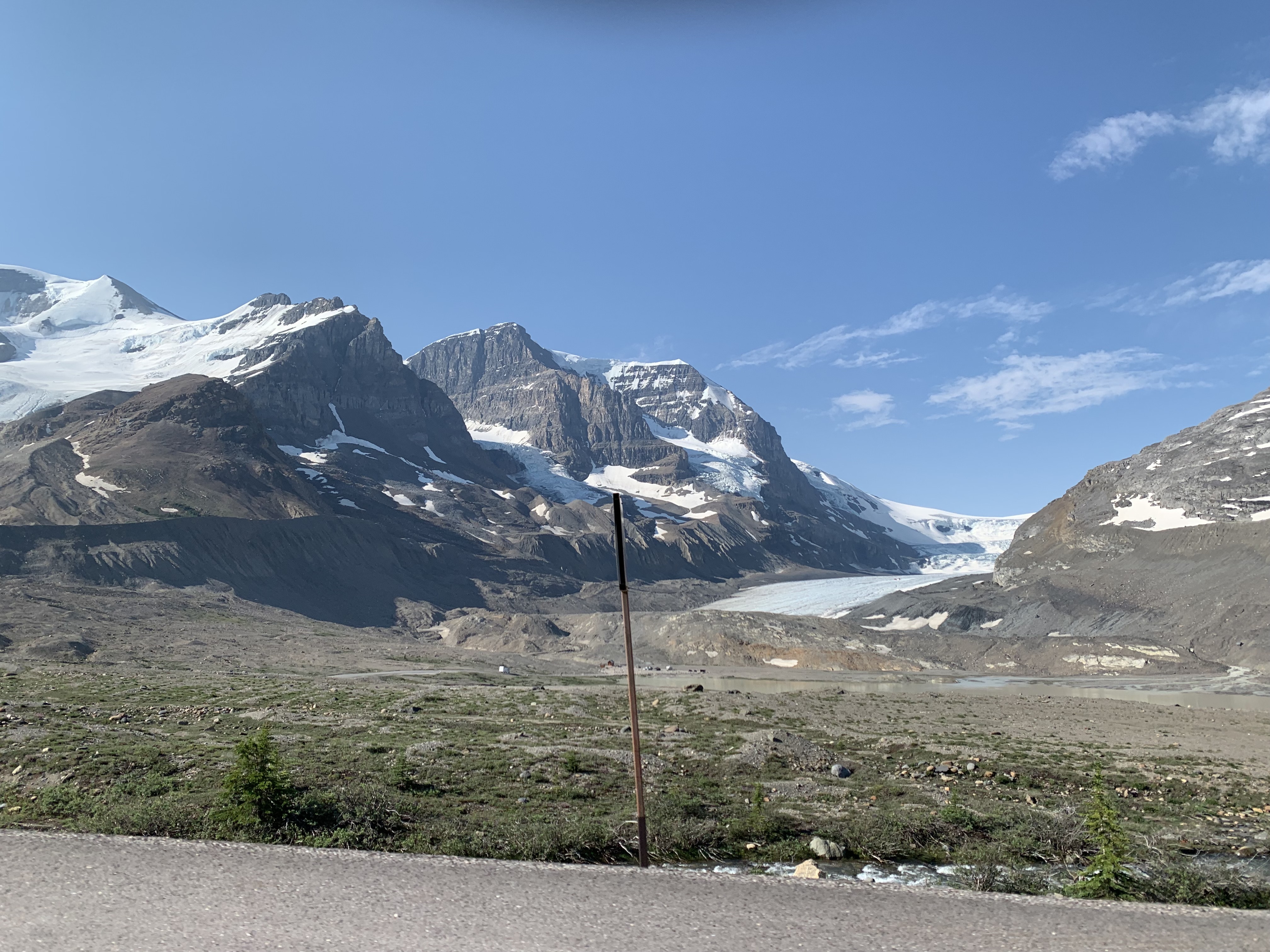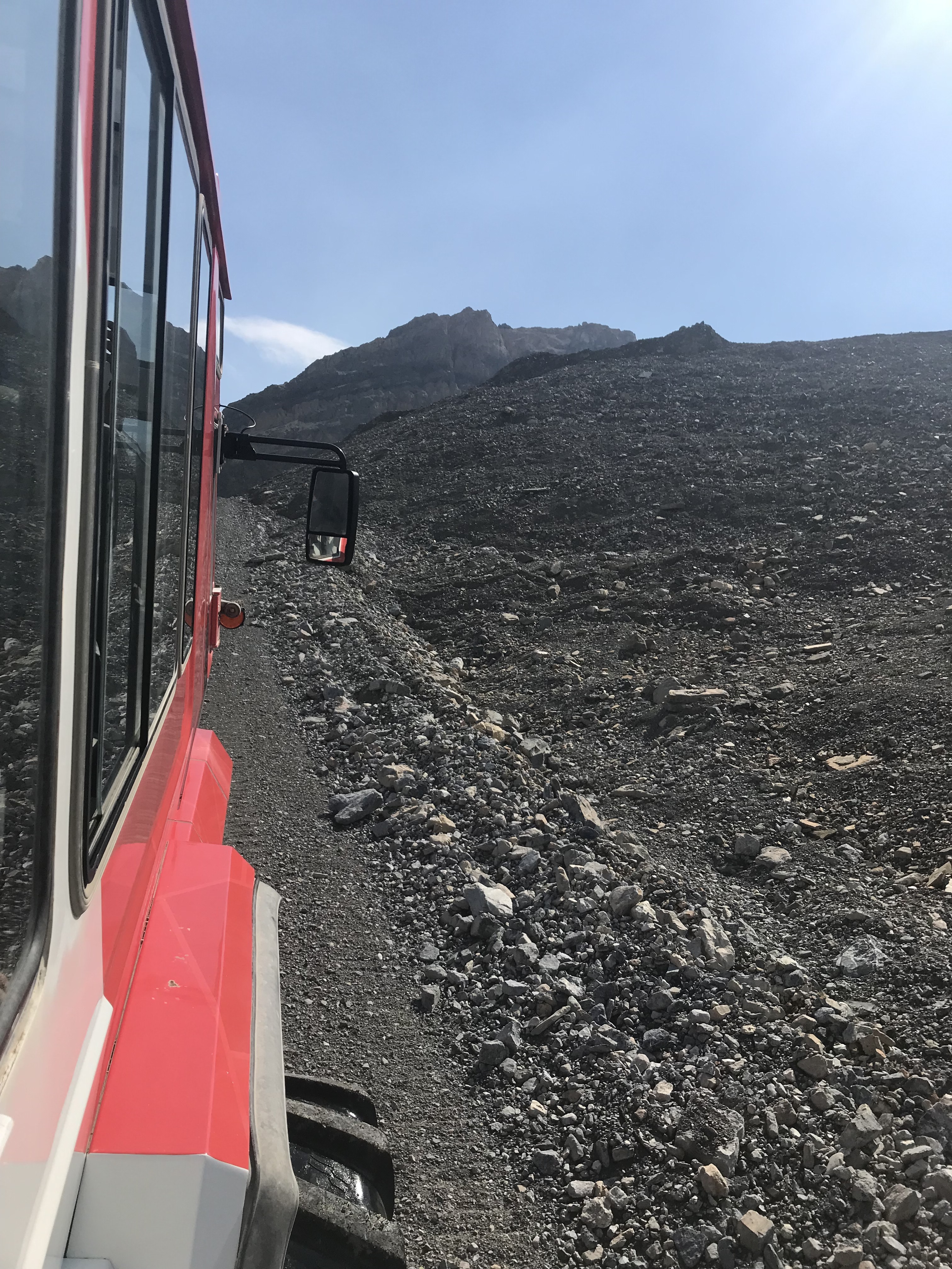 The next morning, July 1st (Canada Day) we had a great breakfast and headed on our way towards the Columbia Icefields. We planned to take the tour up on the Athabaska Glacier and check out the glass bridge. It is well worth the cost as the glacier is receding way faster than anyone thought and there won’t be many years left where the tour is available. The highway down to the Ice Fields is spectacular!