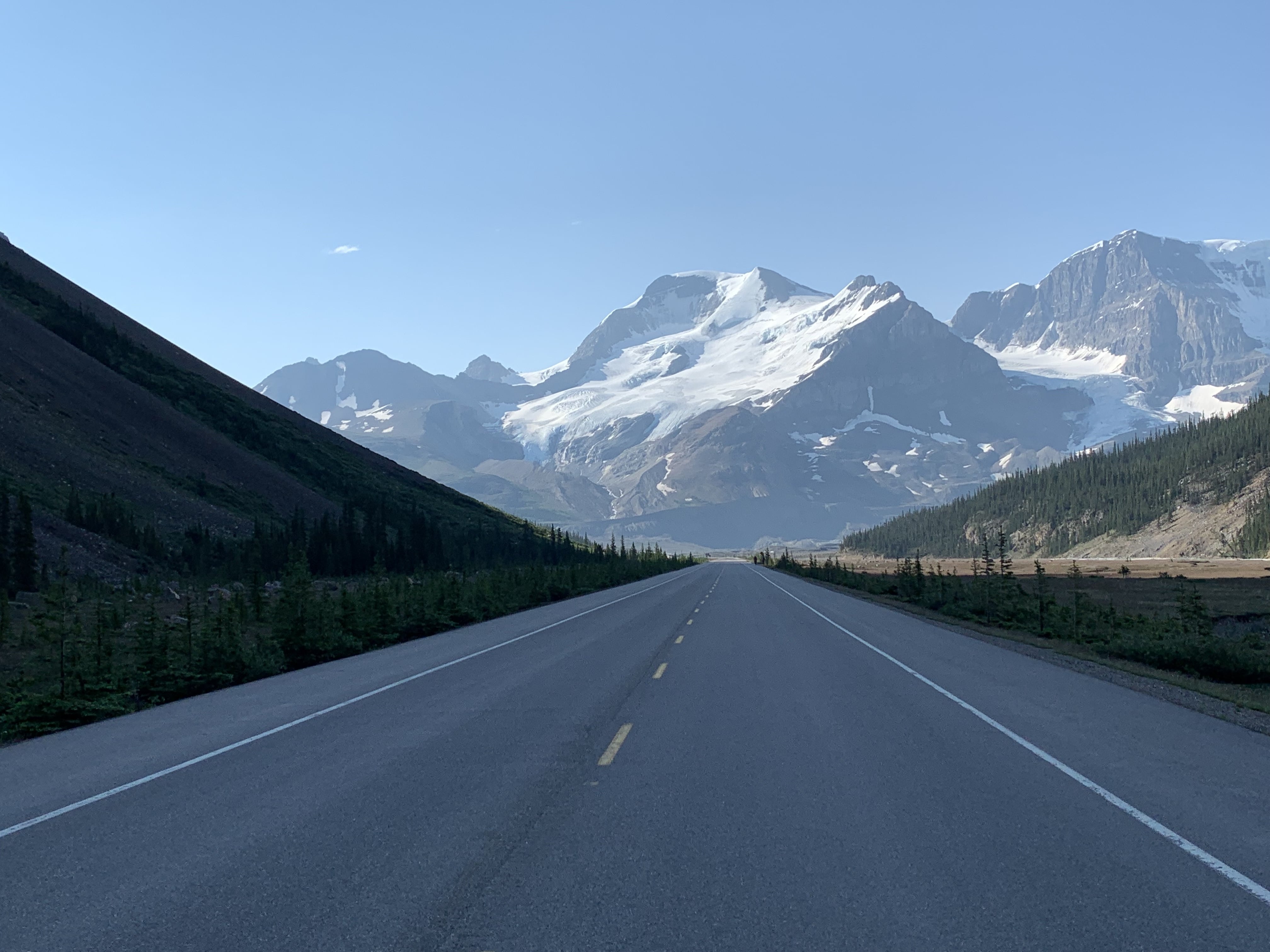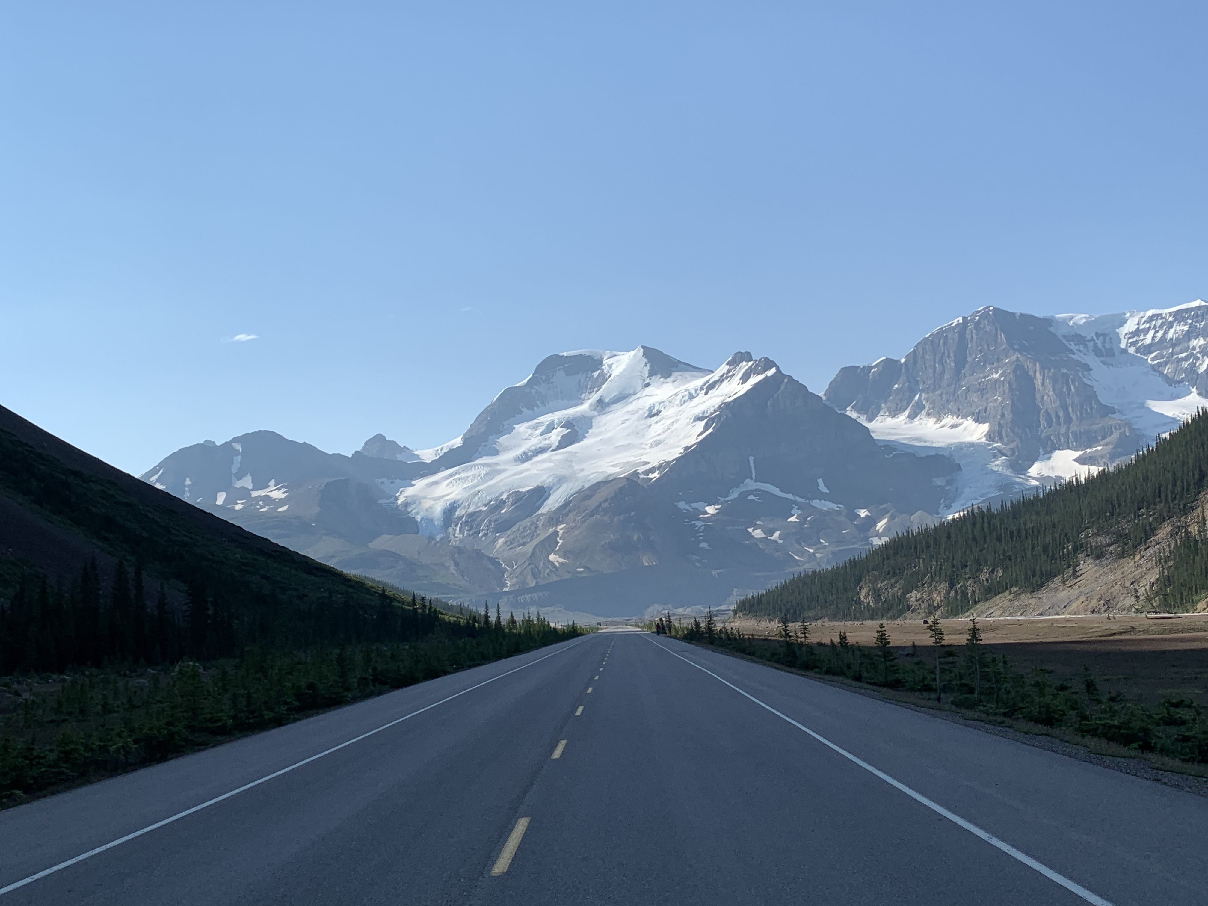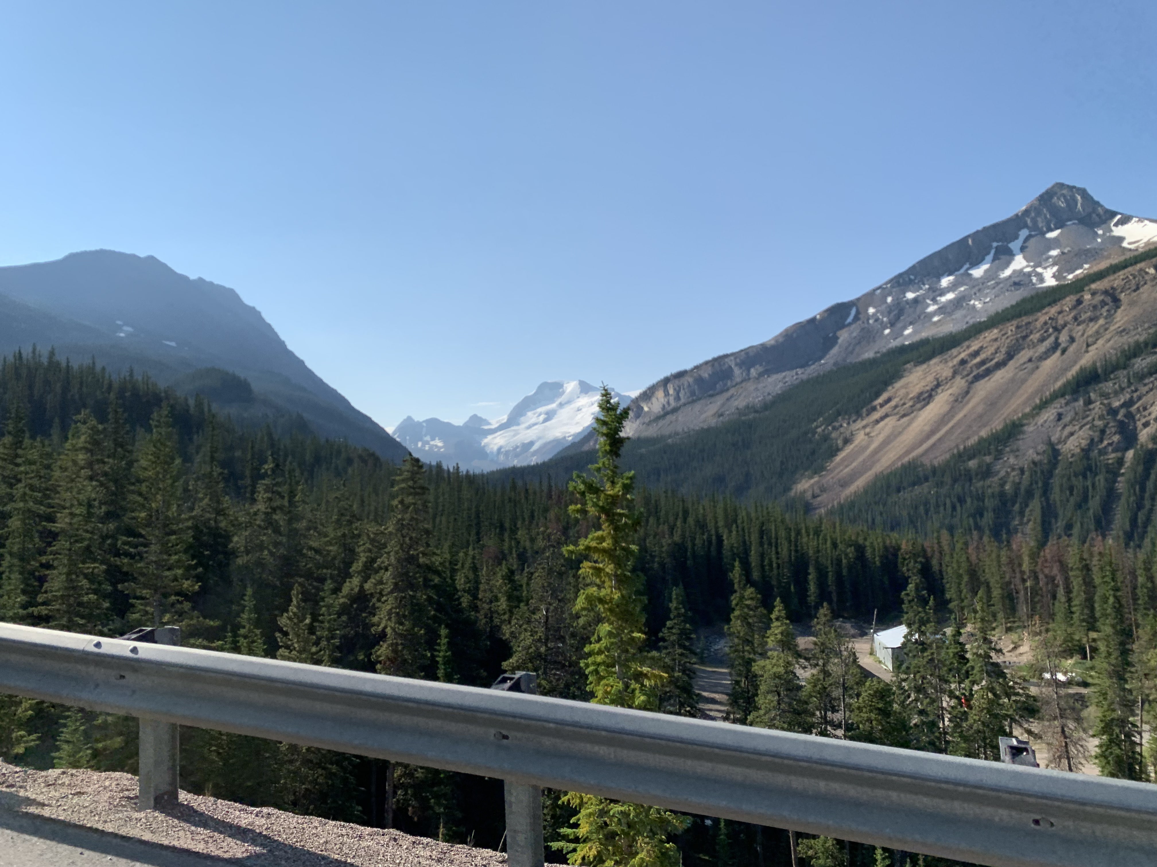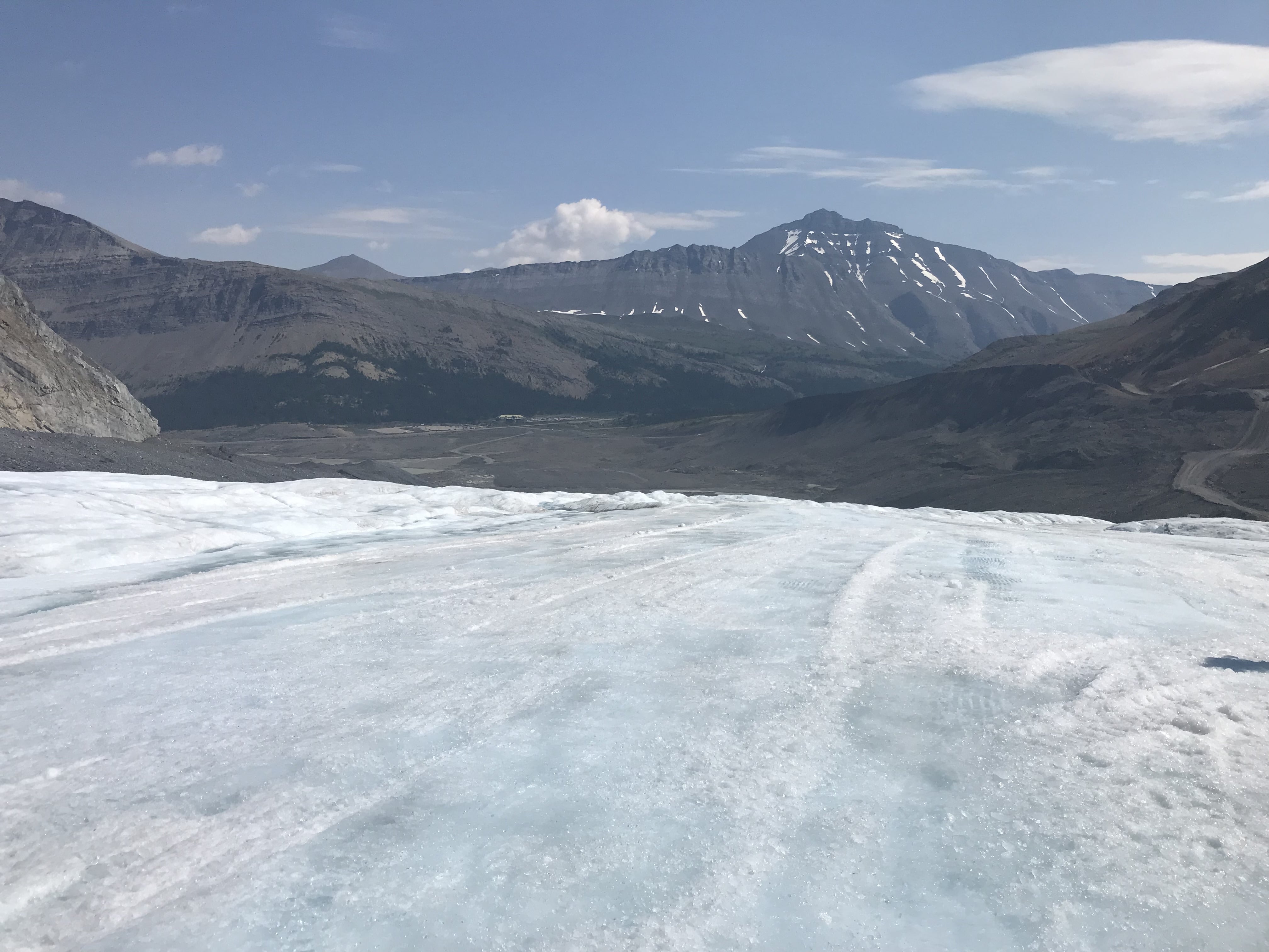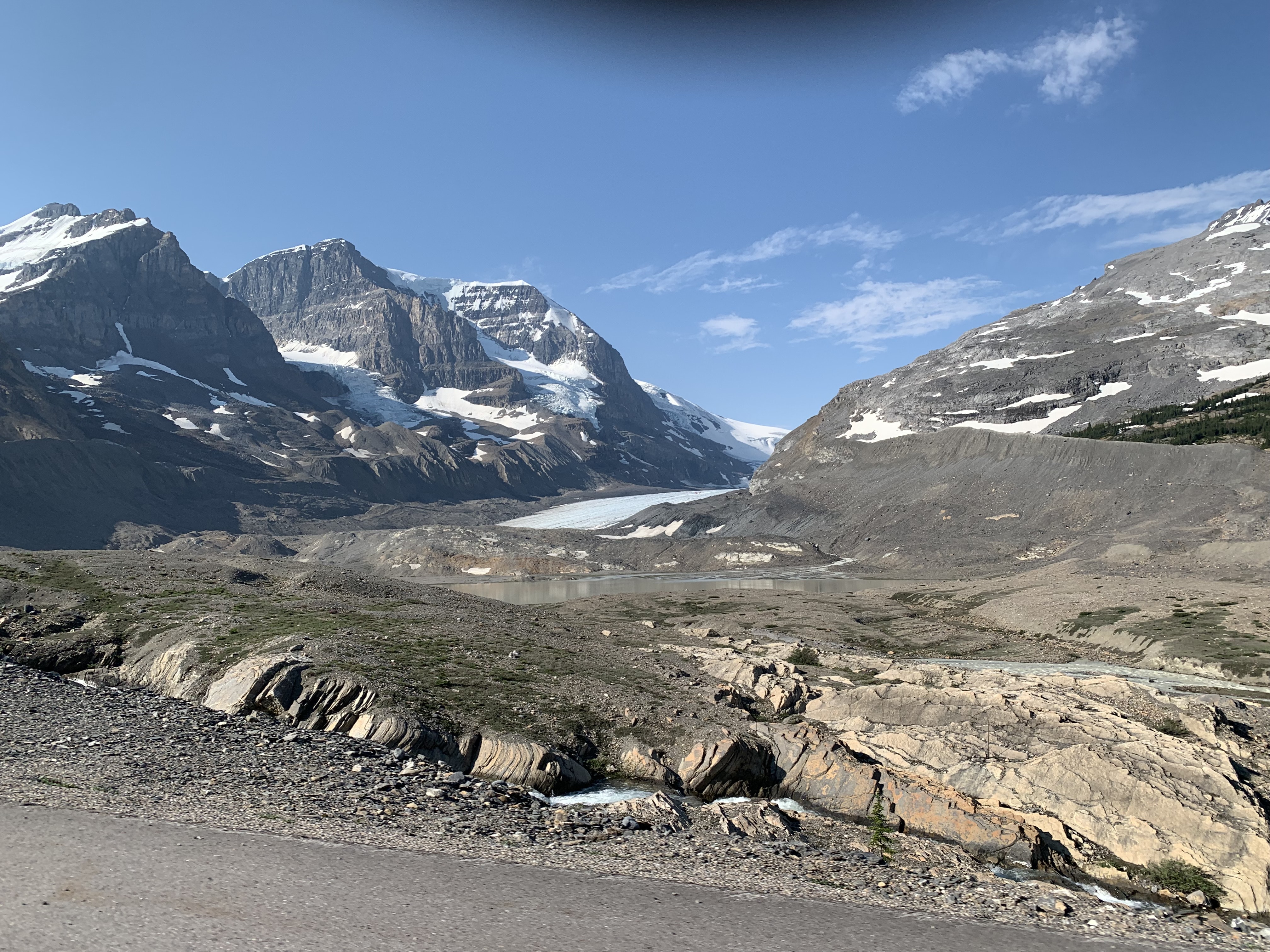 The next morning, July 1st (Canada Day) we had a great breakfast and headed on our way towards the Columbia Icefields. We planned to take the tour up on the Athabaska Glacier and check out the glass bridge. It is well worth the cost as the glacier is receding way faster than anyone thought and there won’t be many years left where the tour is available. The highway down to the Ice Fields is spectacular!