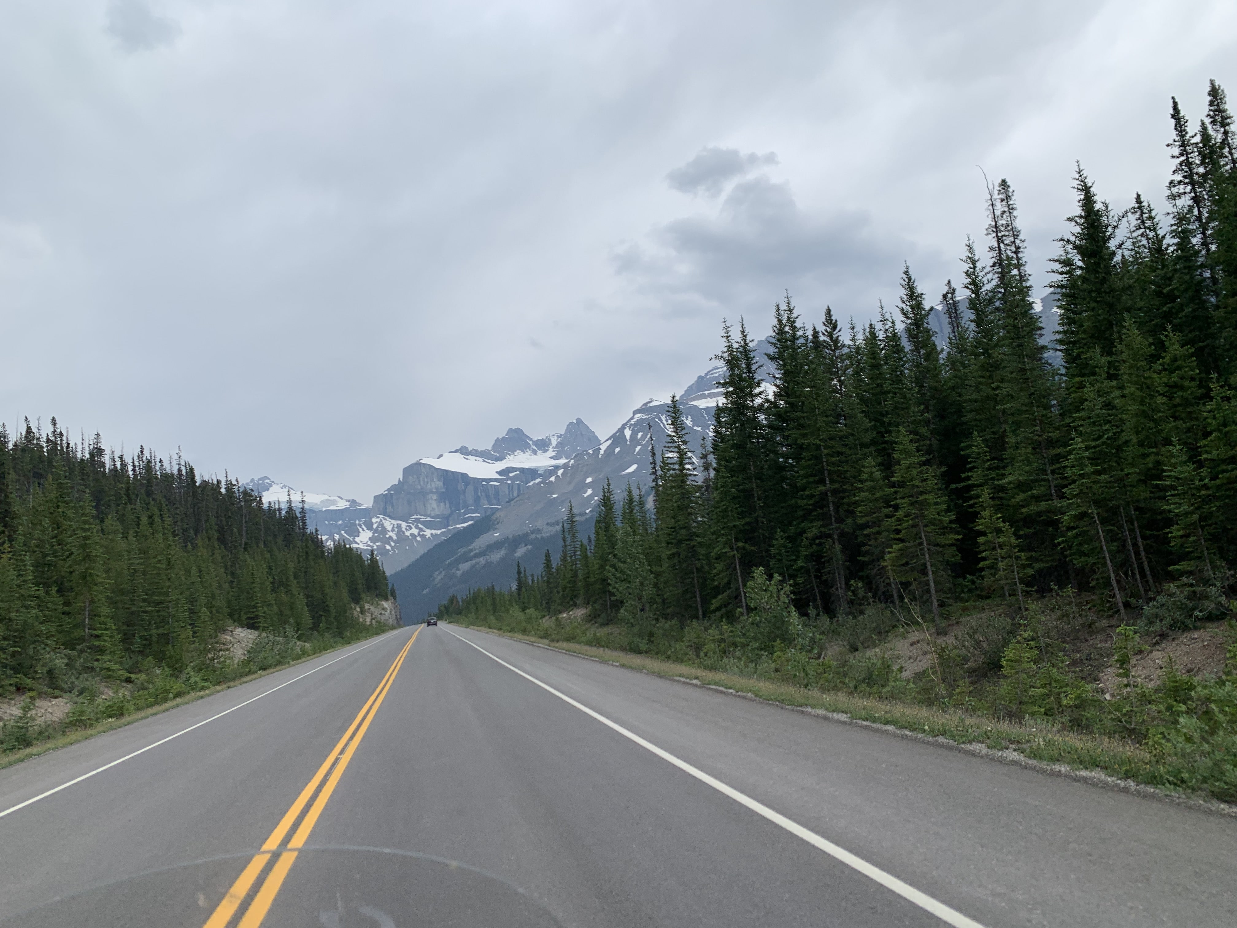After the tour, we headed down the Parkway towards Golden. We stopped at Saskatchewan Crossing ($1.81/litre!!!) to top up with fuel ‘just in case’. We were glad we did!! The clouds were rolling in but the scenery was fantastic…
