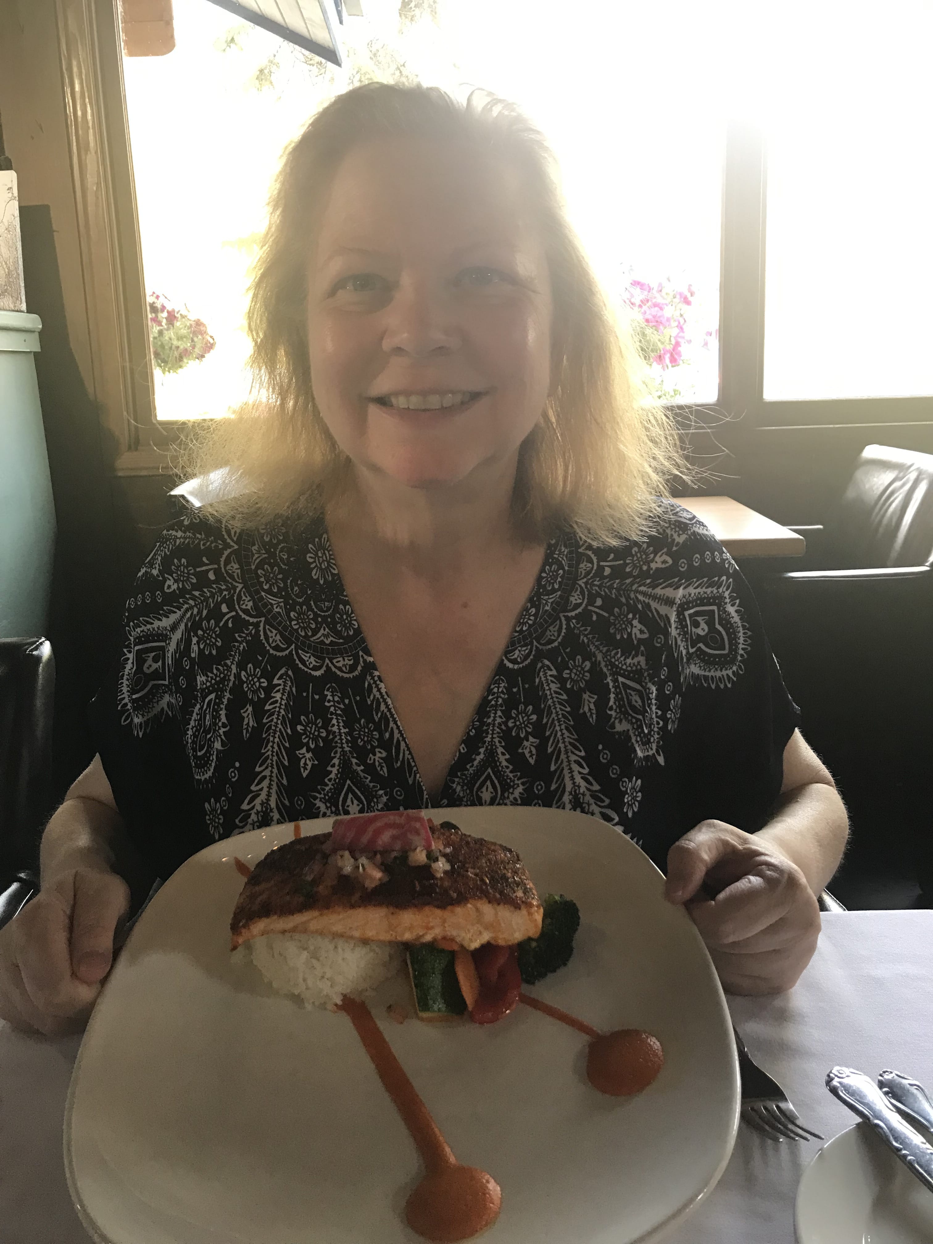 We checked in to Mary’s Motel in Golden and then found the Island Restaurant, where we had an excellent meal. The stuffed Elk was superb! Giselle had a shrimp dish that was also very good.