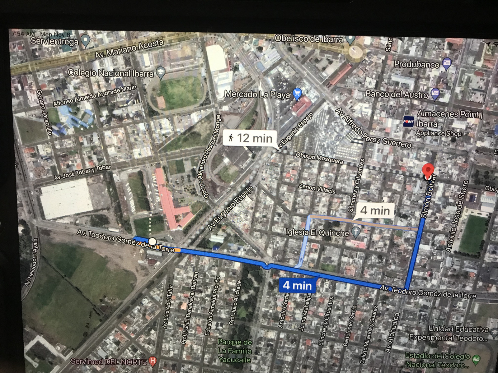 We arrived in Ibarra at the bus depot and had a walking route planned to the bank we needed to get to, Banco Pichincha, on the corner of Simon Bolivar and Obispo Mosquera, about a 15 minute walk. Ibarra is one of the larger cities in Ecuador with a hospital, and several shopping malls. Anything we could not find in Cotacachi can be found here.