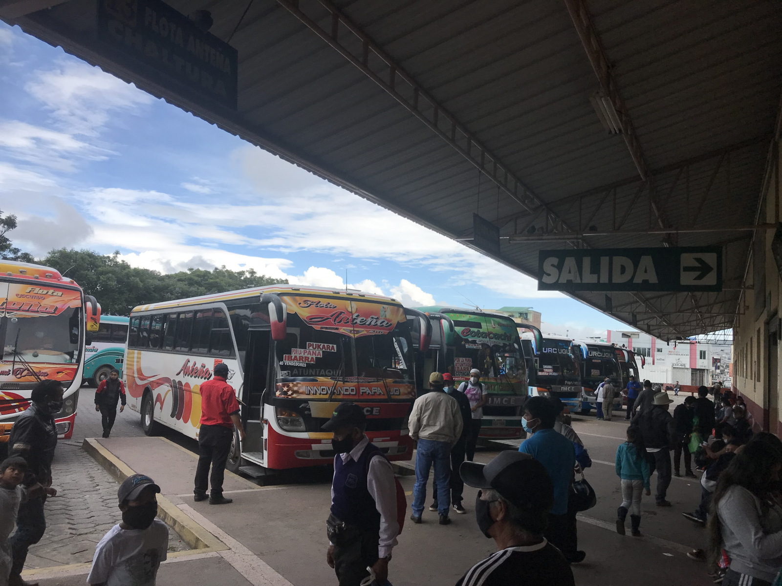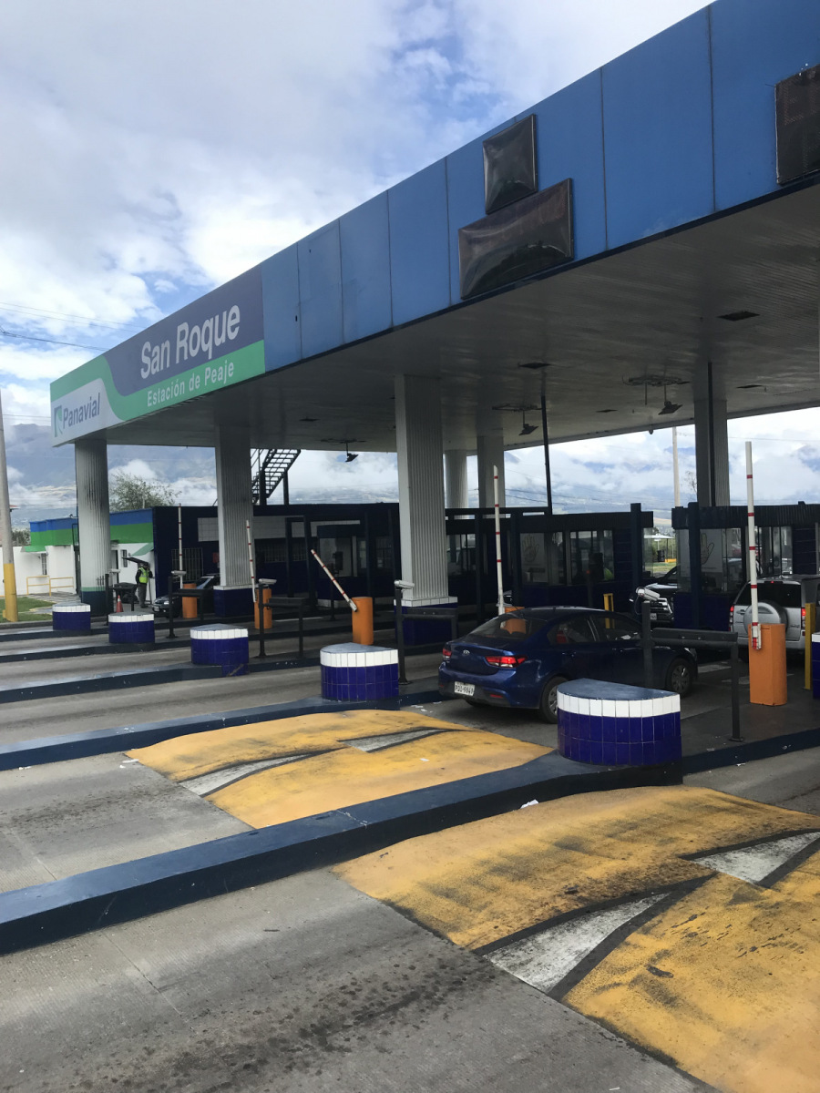 Once the bus has cleared all the pickup points in town, an attendant comes up the aisle and collects your money. In our case it was $1.25 for the two of us from Cotacachi to the terminal in Ibarra, about a half hour ride down the Panamera Highway which is a toll road….