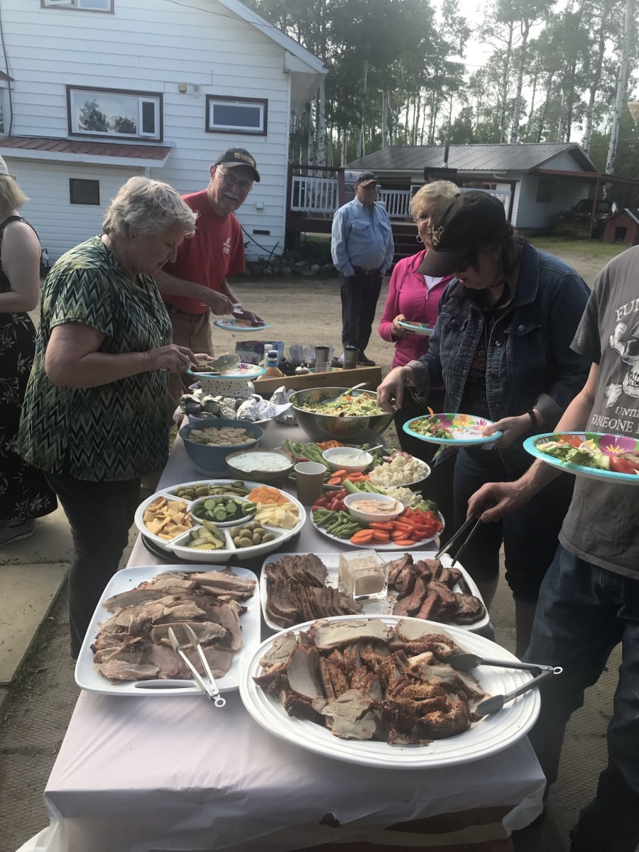 Day 8 of our ride was a day of rest for us as we waited for the Gypsy Run crew to arrive. I headed out to Brian and Sue’s place just north of town to help prepare for the afternoon BBQ event they offered to host for us. Brian had several roasts cooking on the BBQ, and Sue prepared a ton of veggies and salads for all to have.