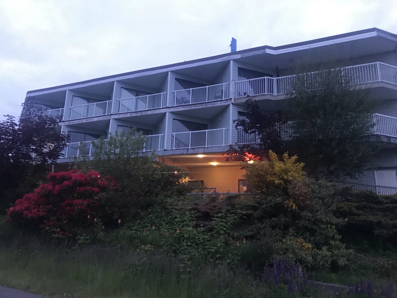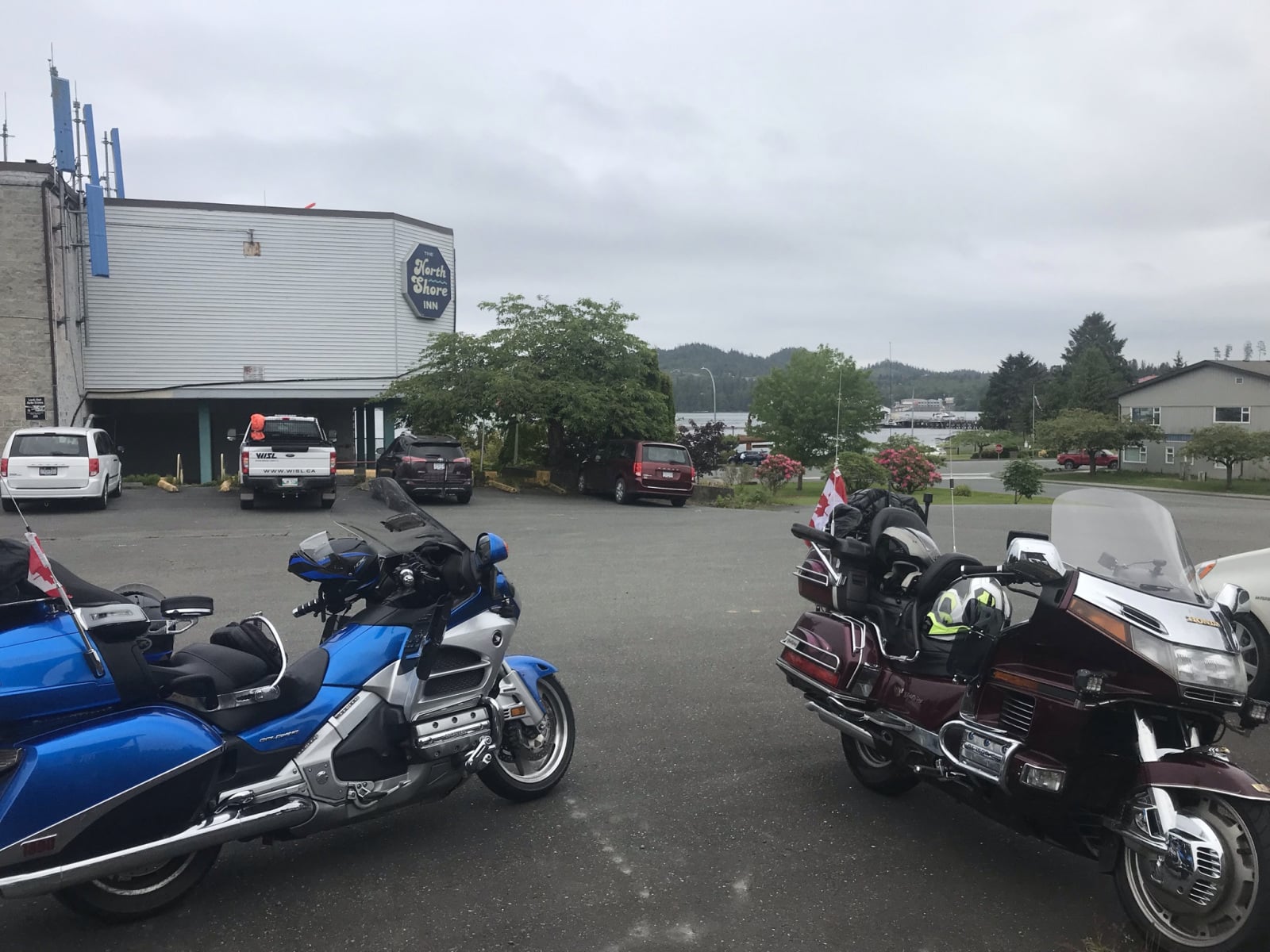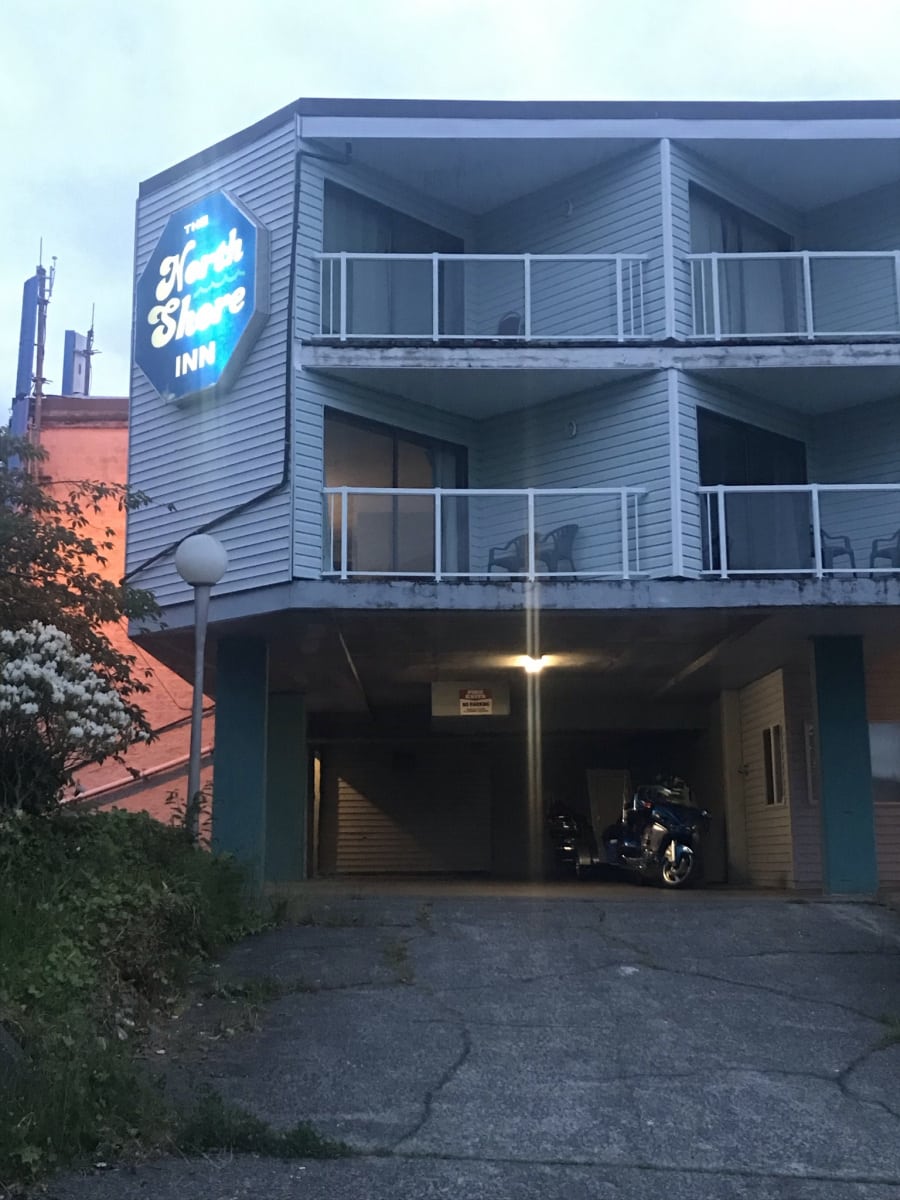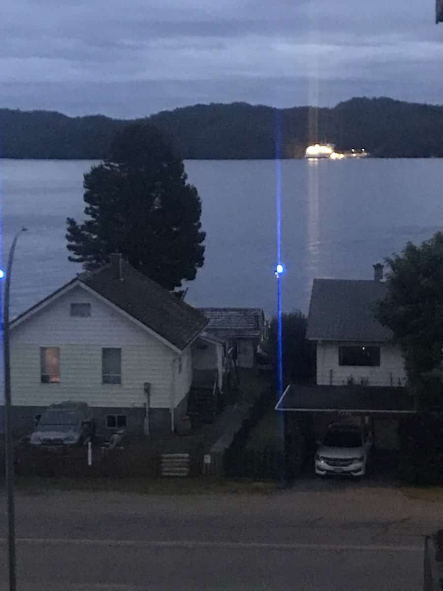 We arrived in Port Hardy and got checked into our motel – the North Shore Inn. It is old and run down with no elevator. The lady at the reception was extremely helpful, and even let us park our bikes in a covered area of the building. We found a bar ( Sporty Bar) just down the street and walked over for dinner. The food and service was awesome! Best prime rib I have had in a long while…