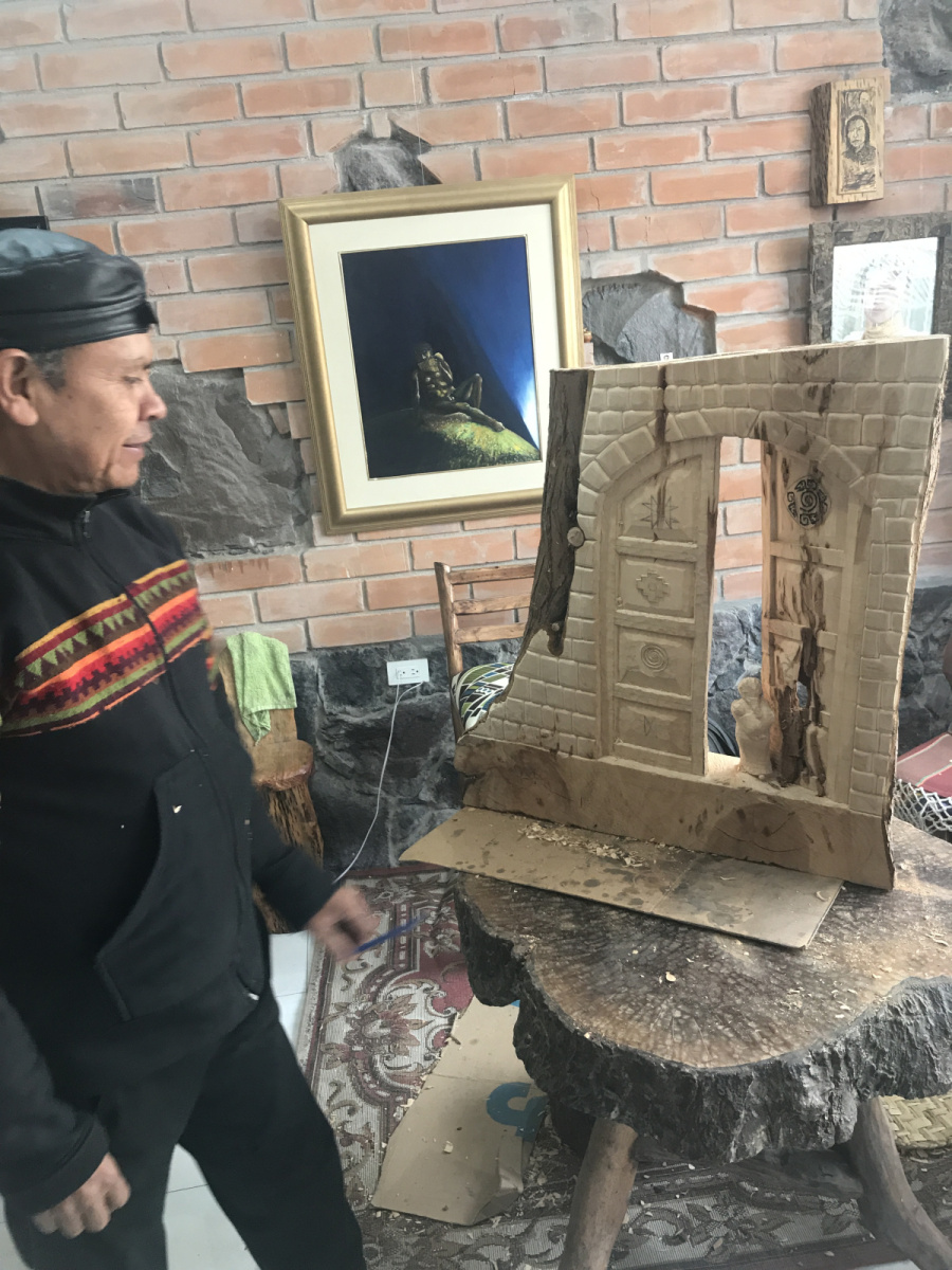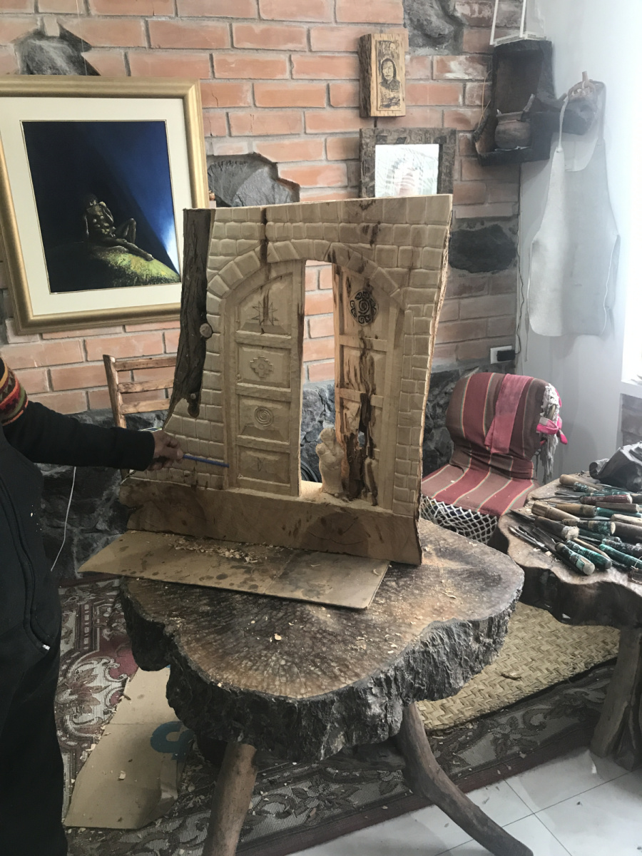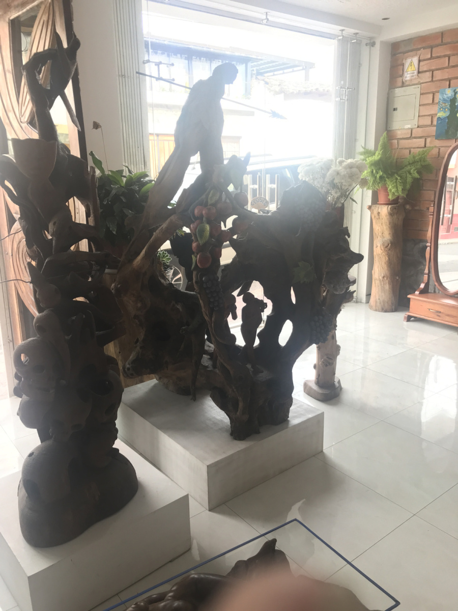 While on my morning walk today I came across this shop on the road coming back into town. I peeked into the window and there was a craftsman inside working on a carving. He noticed me and came to the door and invited me to come in and have a look. Some of his work was outstanding. Well worth the stop.