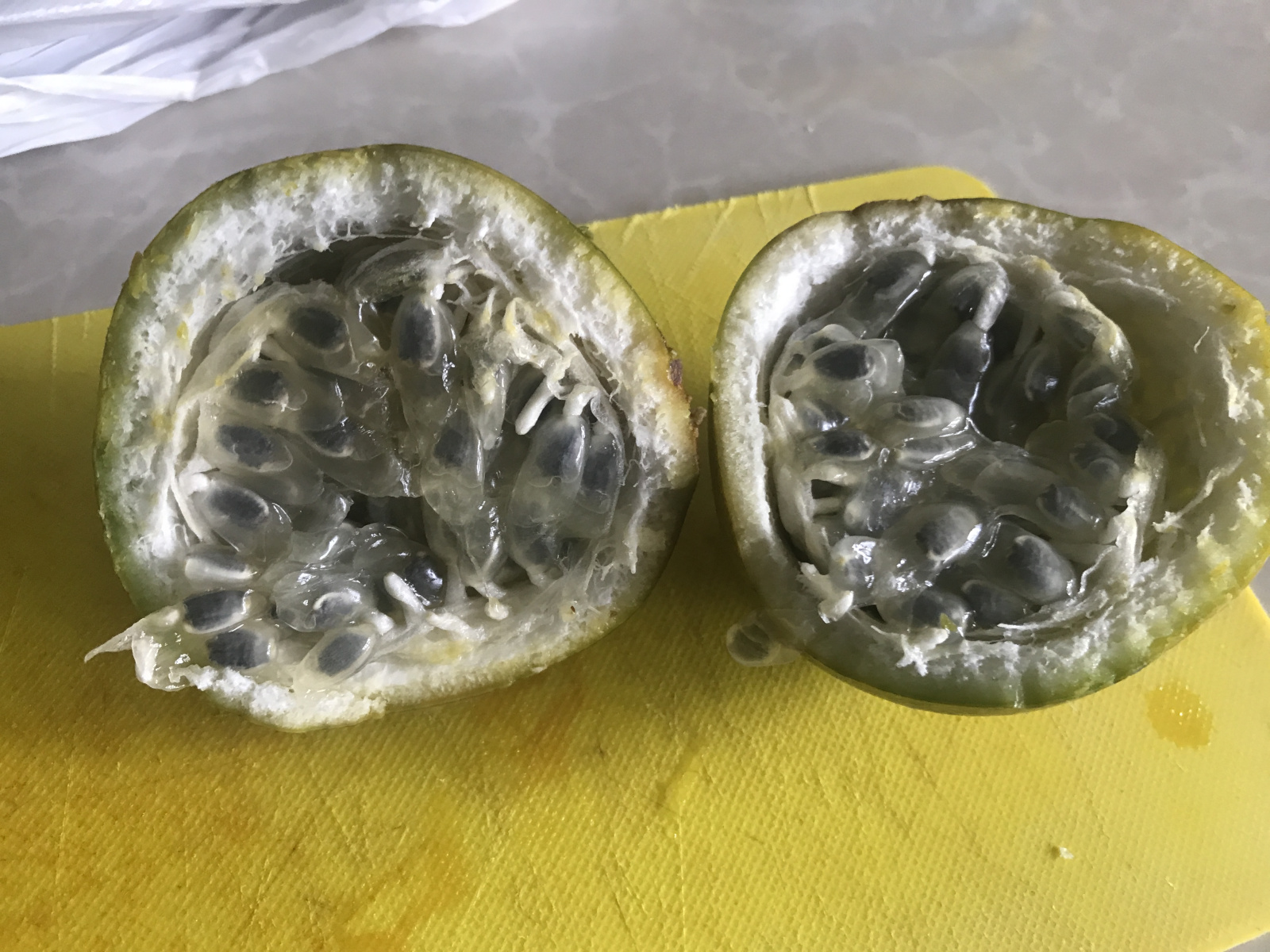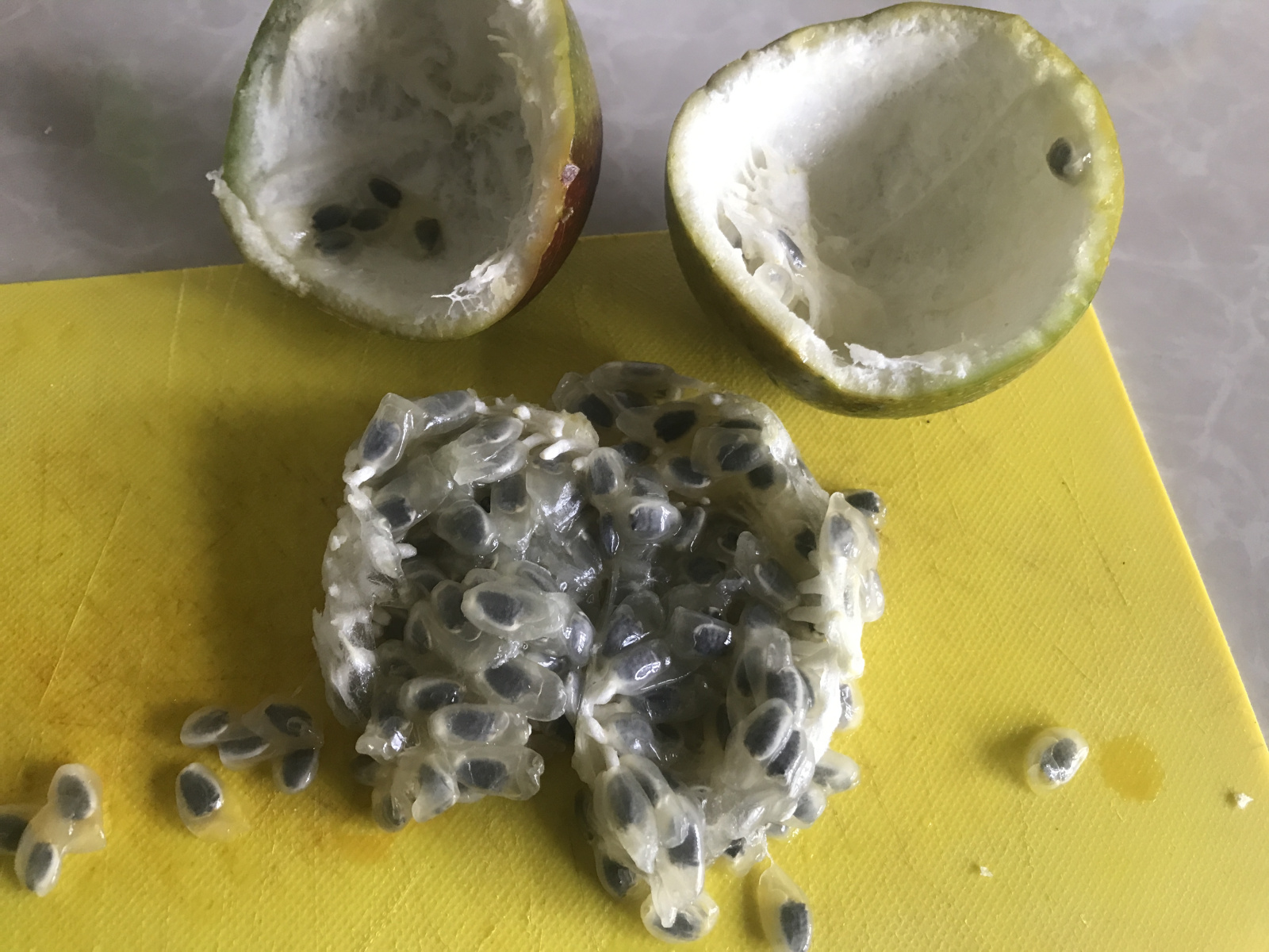 I recognized the Granadilla fruit from the first ever trip we took to Ecuador. Our guide Wilson introduced it to us calling it “Alien Babies”. I picked one and brought it back to the apartment so I could cut it open to show why it is so called… It is gross looking but actually pretty sweet tasting. You eat the gooey seeds in the middle.