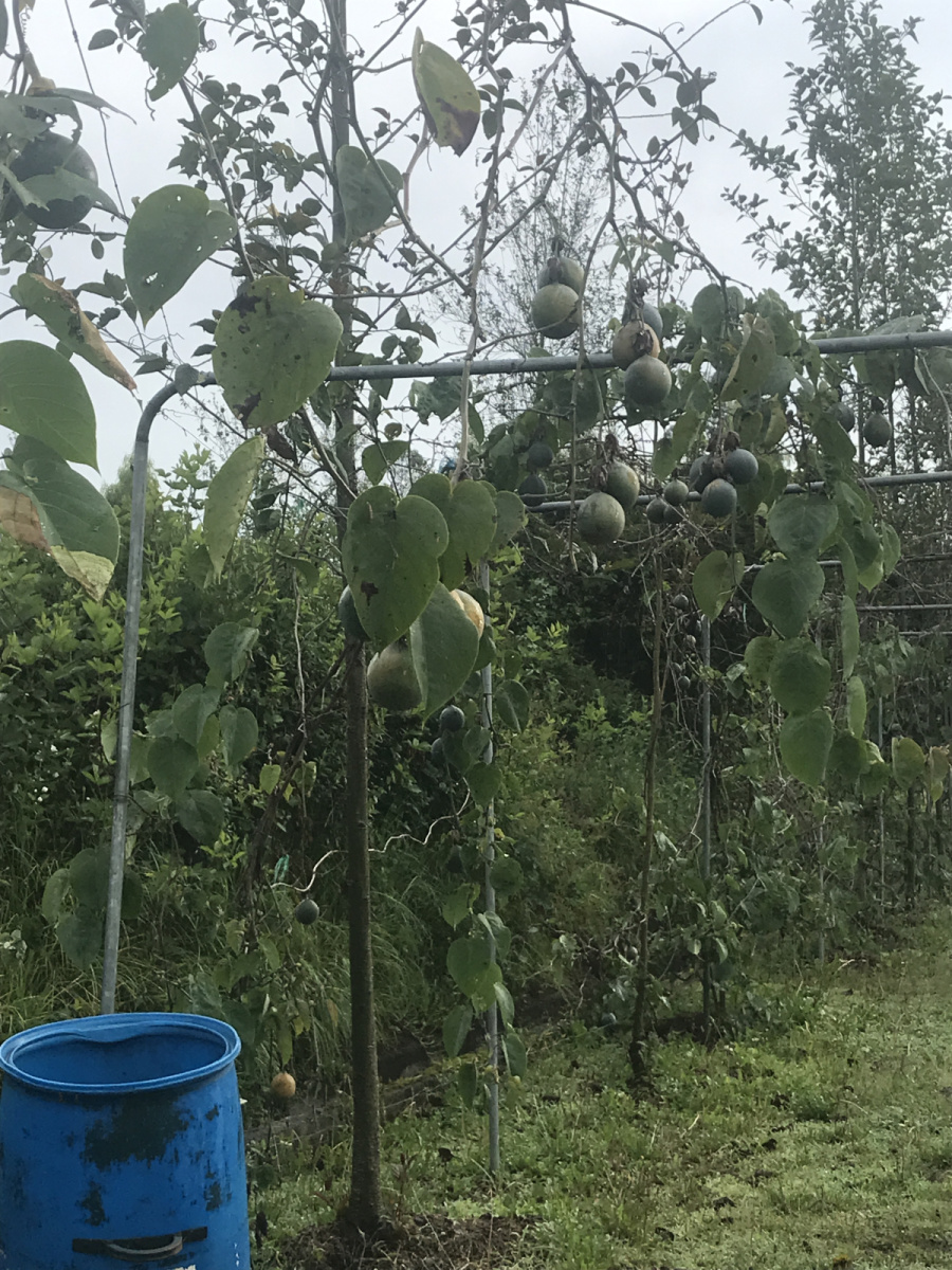 Behind the large wooden gate we came across a somewhat well cared for garden with many displays of native plants. It starts out with a walkway covered by an arbour with Granadilla vines that were lush with fruit.