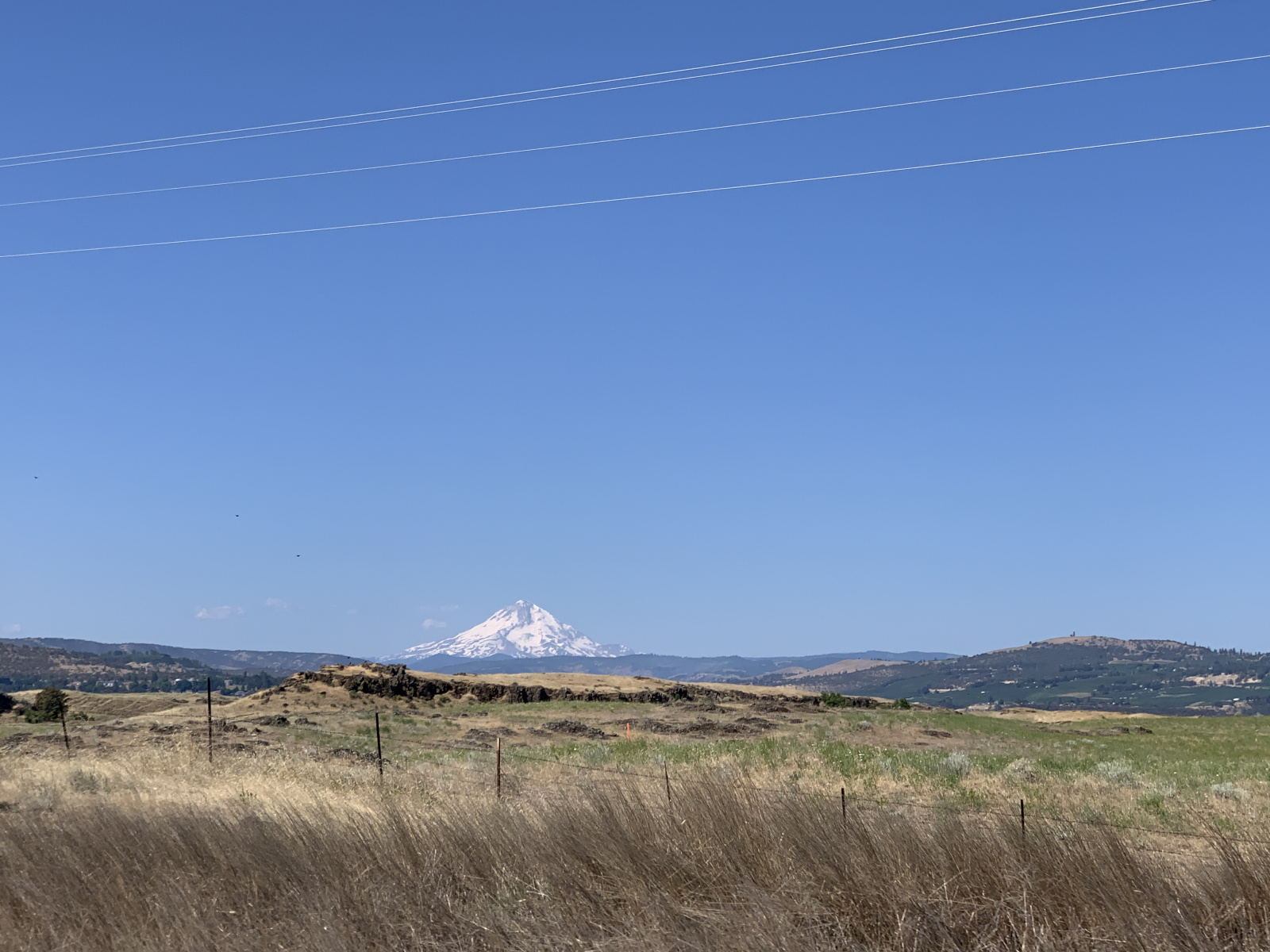 Day two of our ride took us from Selah down to our southern destination of Sisters, Oregon. Our route took us along Highway 97 down to Goldendale, Washington, then west on Highway 142. This was a beautiful stretch of highway through some hilly farmland and into another canyon following the Klickitat River. Mt Adams was in view to the west along much of this stretch.