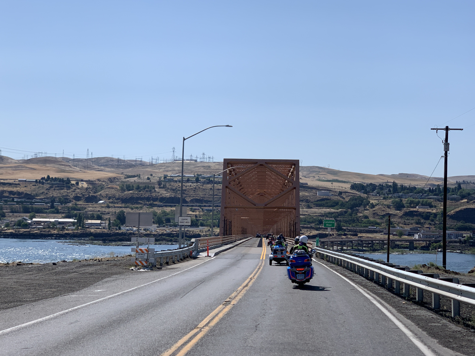 Day one took us from Blaine, Washington, down some backroads and onto highway 9 to Sedro Wooley. Some of the groups were going to stop there for breakfast. We passed through and headed out along the South Skagit Highway as far as the bridge over the Sauk River south of Rockport connecting us to Highway 530. We connected back up with Highway 20 at Rockport and continued east to Marblemount, our first fuel stop of the day. From there, we rode through the Cascade mountains to our next fuel stop at Pateros, on the Columbia River and then a lunch break at the Wells Dam rest area.