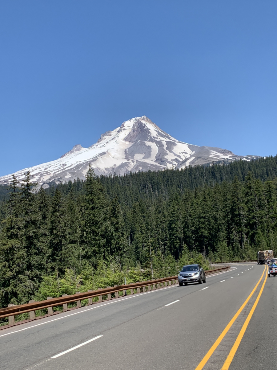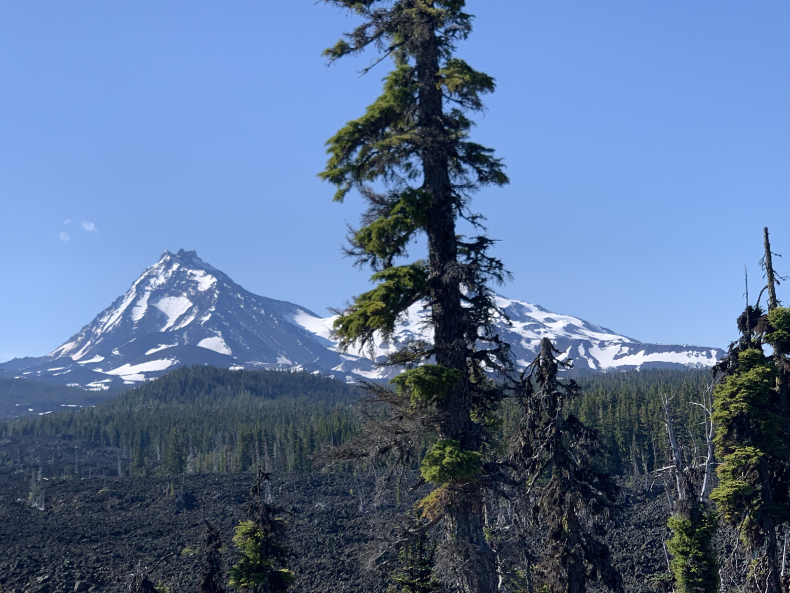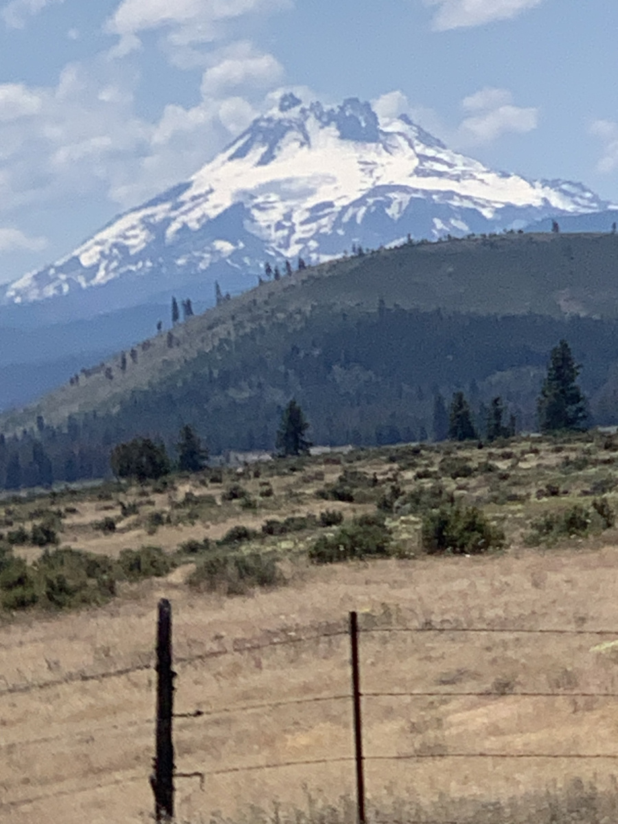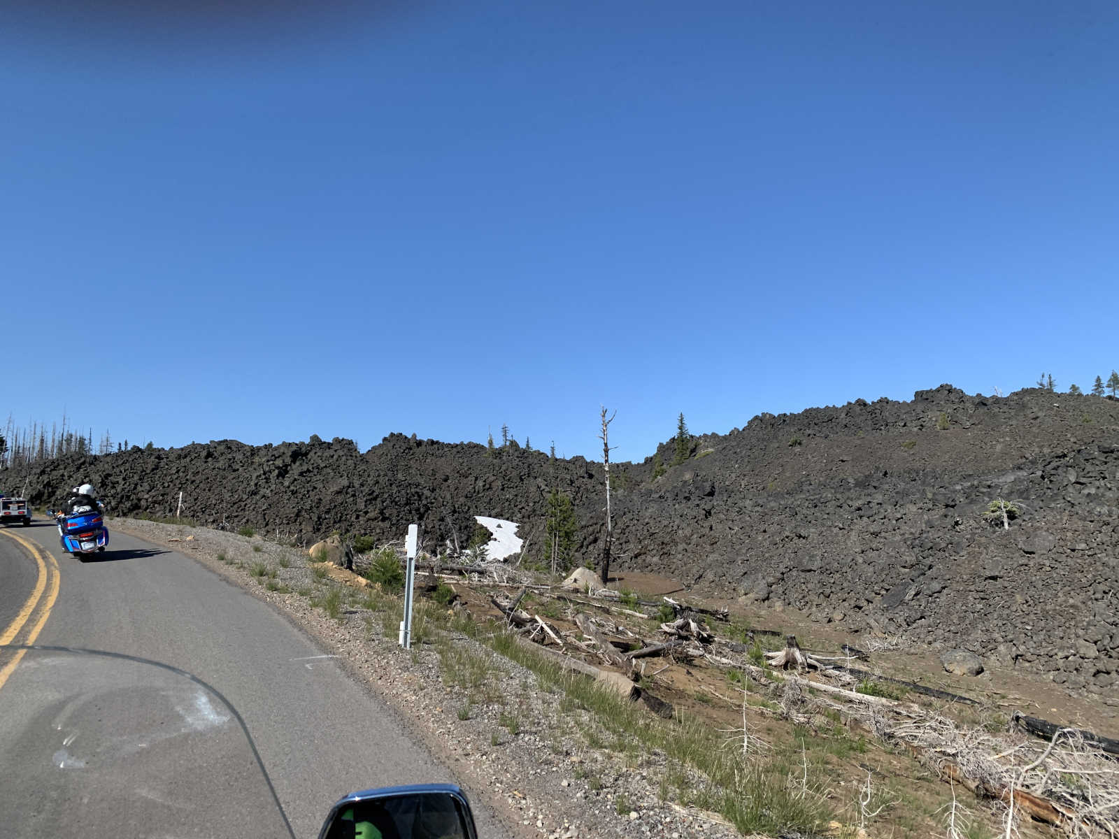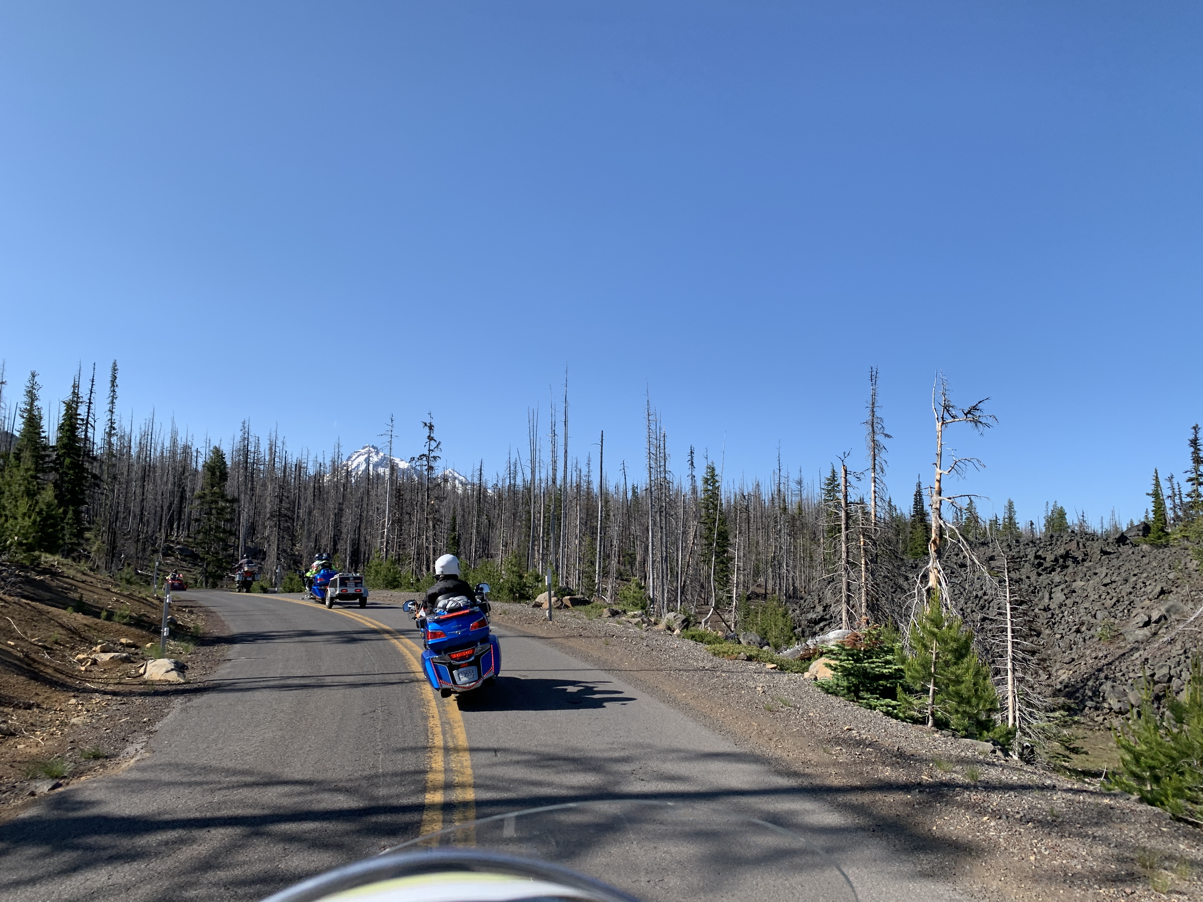 Highway 30 ends at Hood River, Oregon. From here we took Highway 35 towards Mount Hood. The views were spectacular all along the way. We turned south on Highway 26 heading towards Sisters. After a fuel stop, we had a lunch break at the Skyline Snowpark. We were supposed to continue on Oregon Skyline Forest road NF-42, but it was closed to allow cleanup from wildfires the year before.