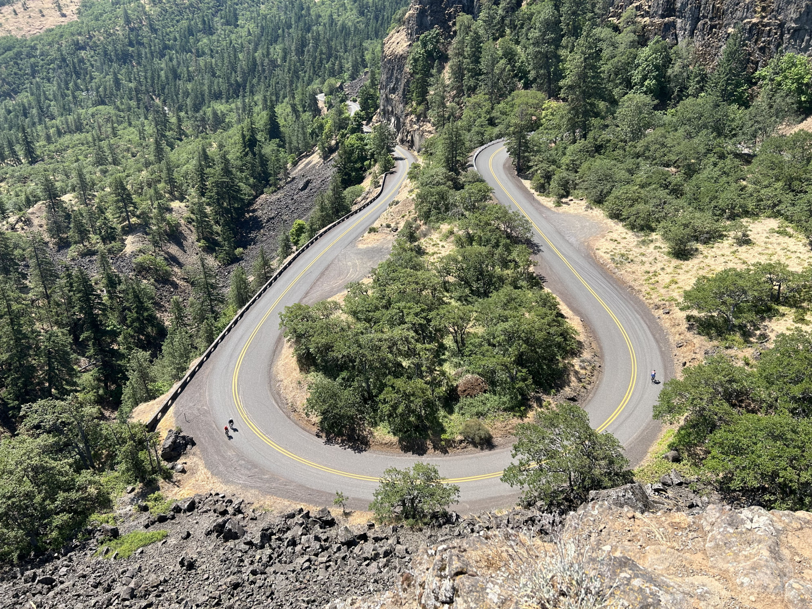 Highway 142 comes out at Lyle, on the banks of the Columbia River and Highway 14. From there we headed east on 14 to The Dalles where we fueled up. After crossing over the Columbia River into Oregon, we caught the historic Columbia River Highway 30 heading west along the river. This is another twisty section of road with some beautiful scenery that any motorcyclist should not miss when in the area. We stopped at an overlook about halfway along for a break.